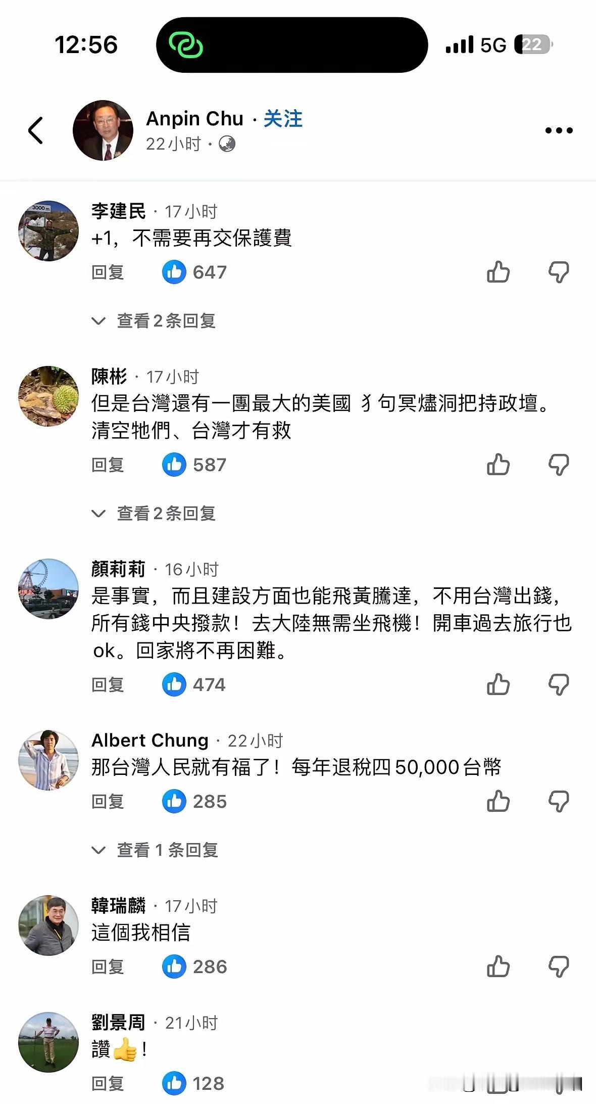 台湾省网友发帖,说两岸要和谐,有大陆做后盾,台湾省即使没有任何国防预算,世界上也没有一个国家敢欺负台湾省,因为背后有整个大陆做靠山呢。