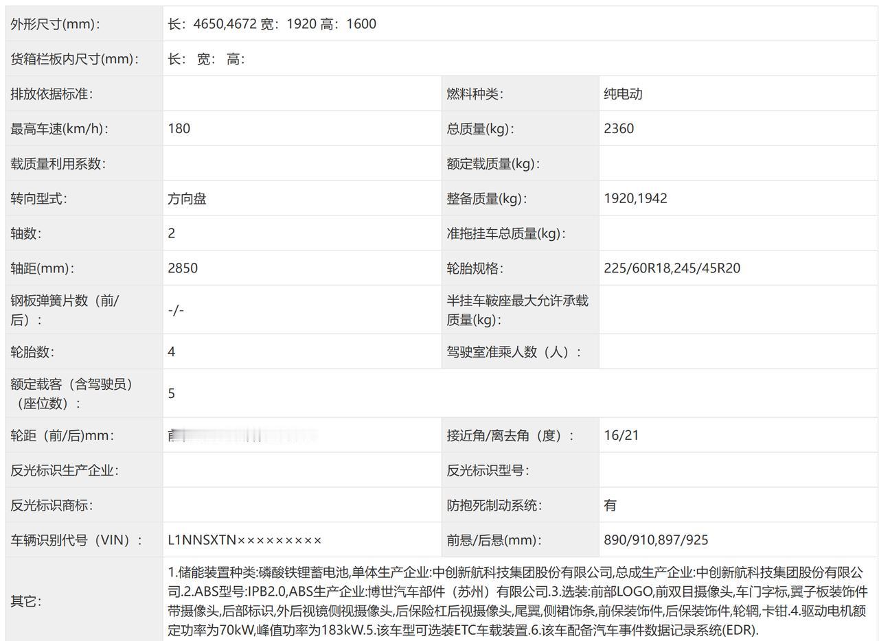尺寸和动力主打均衡实用,从型号看,这应该是全新的紧凑型纯电SUV。尺寸很克制:长4650-4672mm、宽1920mm、高1600mm,轴距2850mm。这个身材比G6小一圈,跟比亚迪元PLUS、埃安Y差不多大。整备质量1.9吨出头,配225/60R18或245/45R20轮胎,20寸大脚上身的话,视觉效果肯定不差。