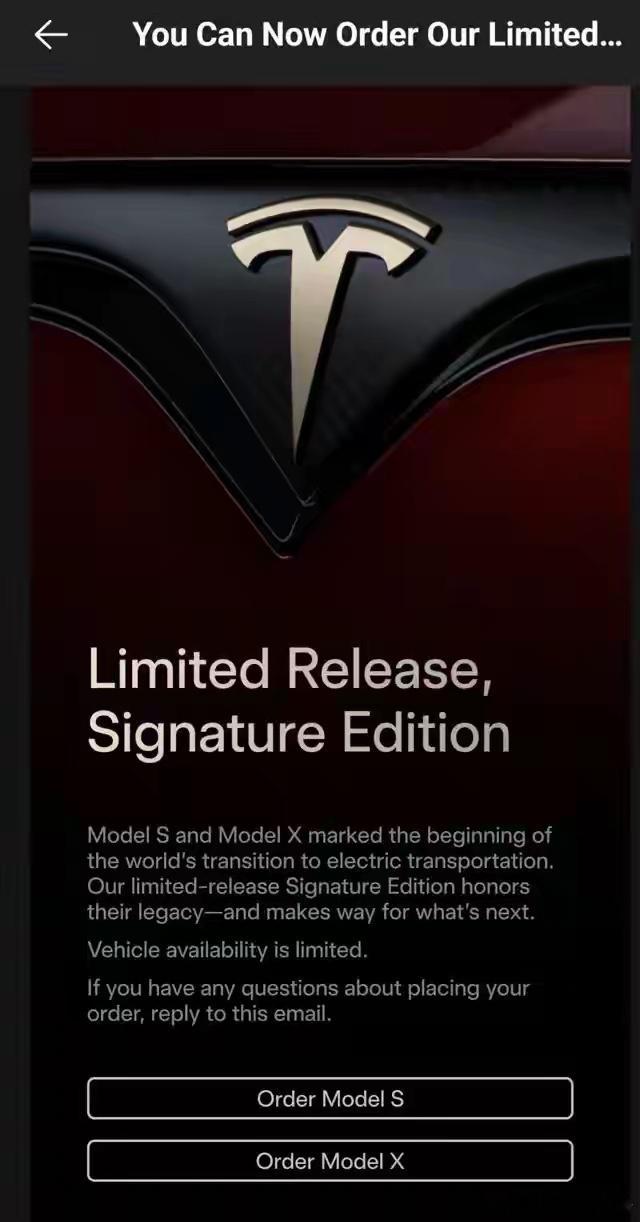 最关键的是独立编号,比如1/250这种,收藏属性巨强。价格近110万人民币,虽然贵得离谱,但这是停产前的“最终版本”,对于收藏家和死忠粉来说,这3万美元的溢价就是入场券。特斯拉