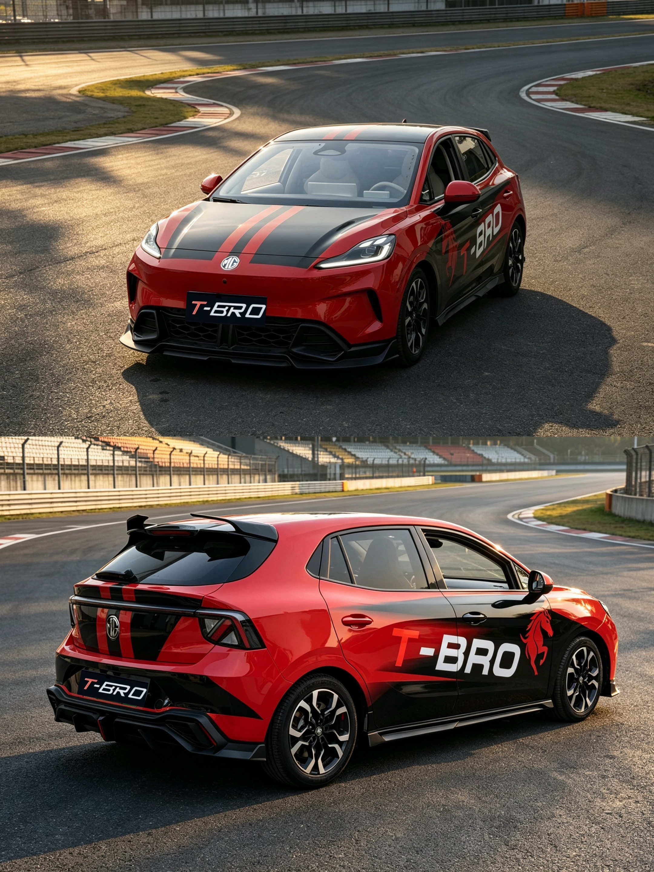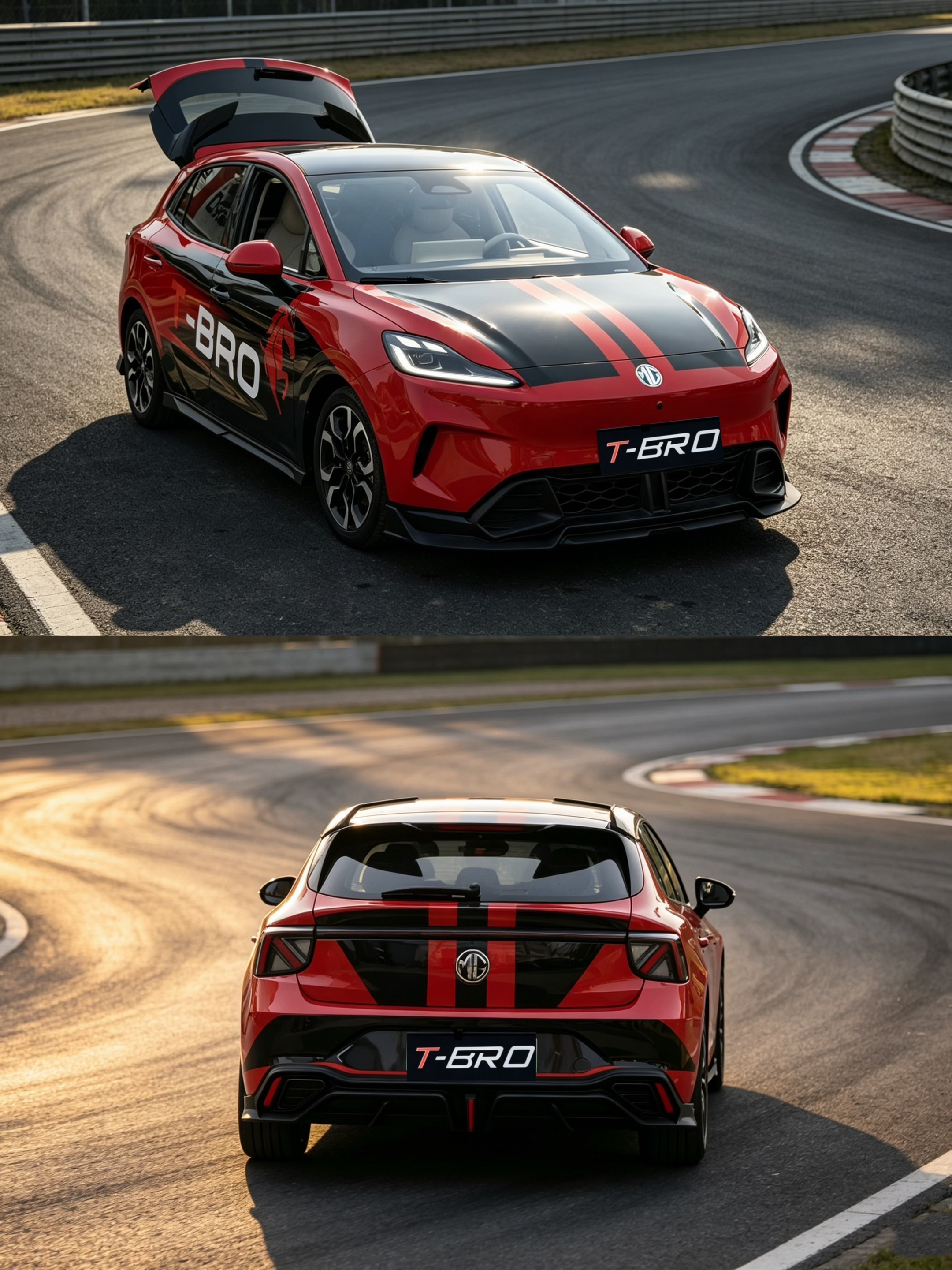 全新名爵MG4“暴徒”全整形态展出!TBRO为官方专属设计了一套红黑赛道拉花,车