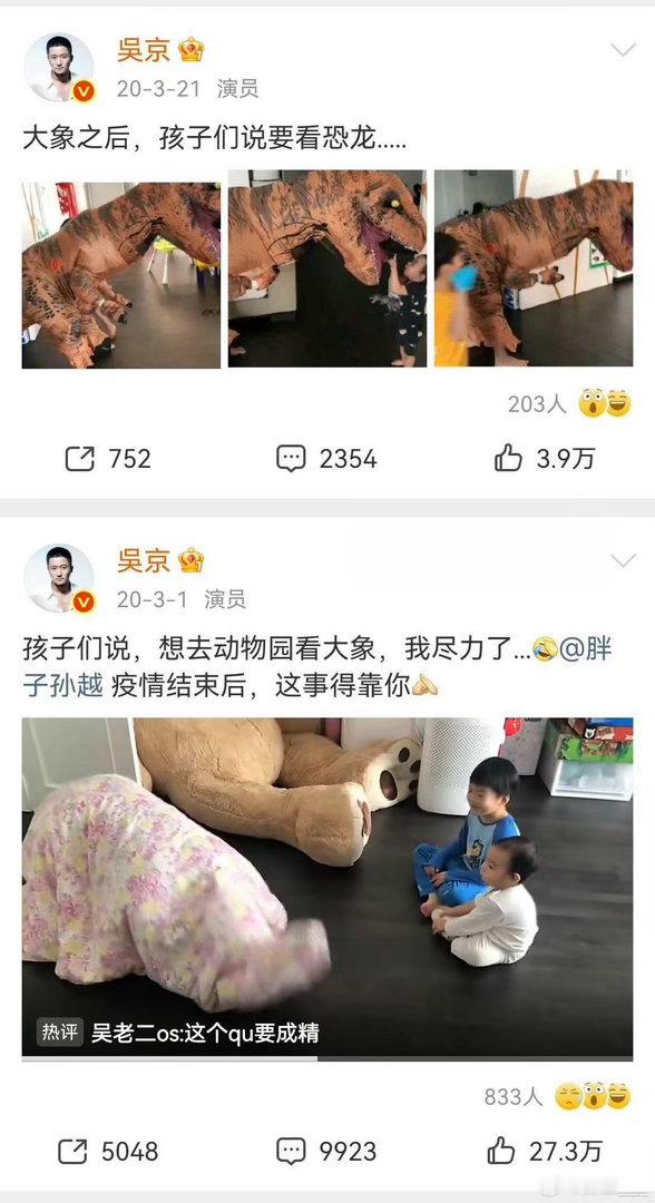 吴京真在家带娃了 从节目调侃到现实兑现,吴京也太可爱了。一直默默陪伴孩子,做谢楠