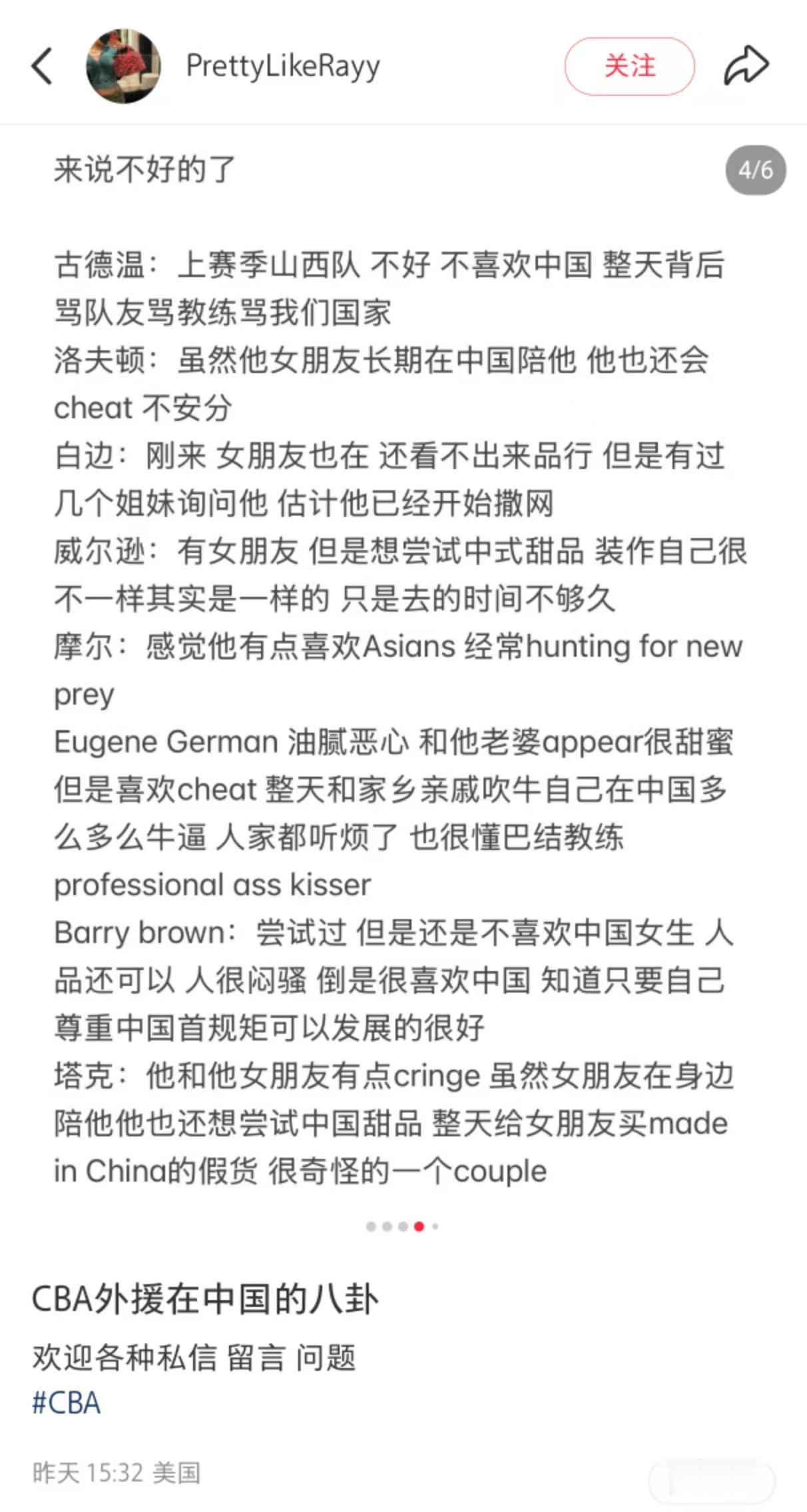 最近有个IP美国的博主爆料CBA各队外援私下什么样子火了!引起球迷激烈讨论!