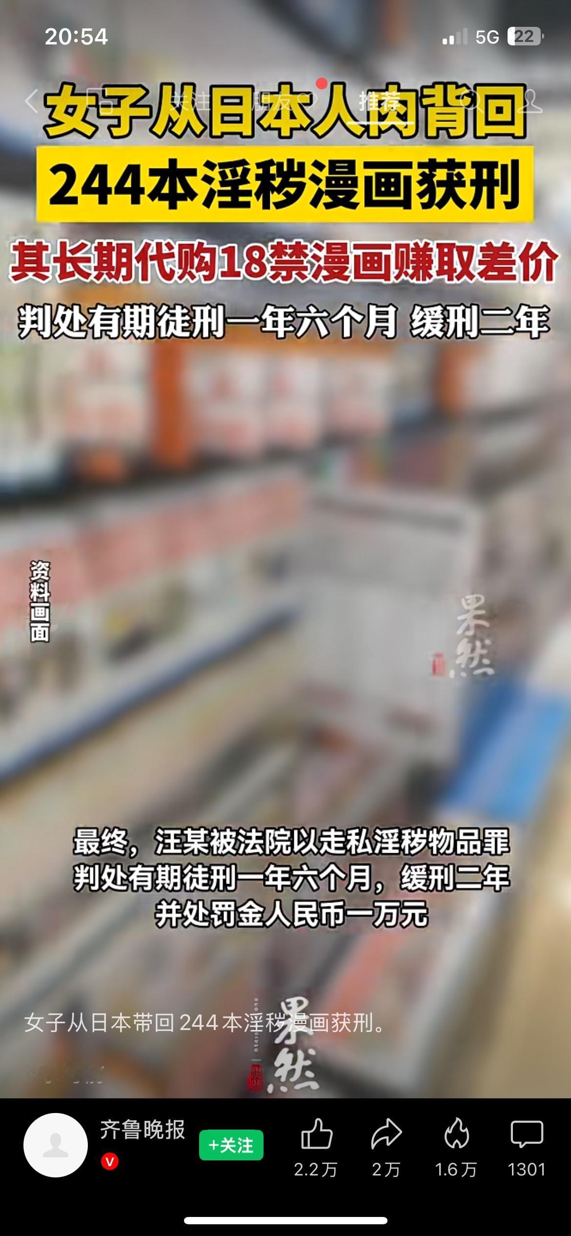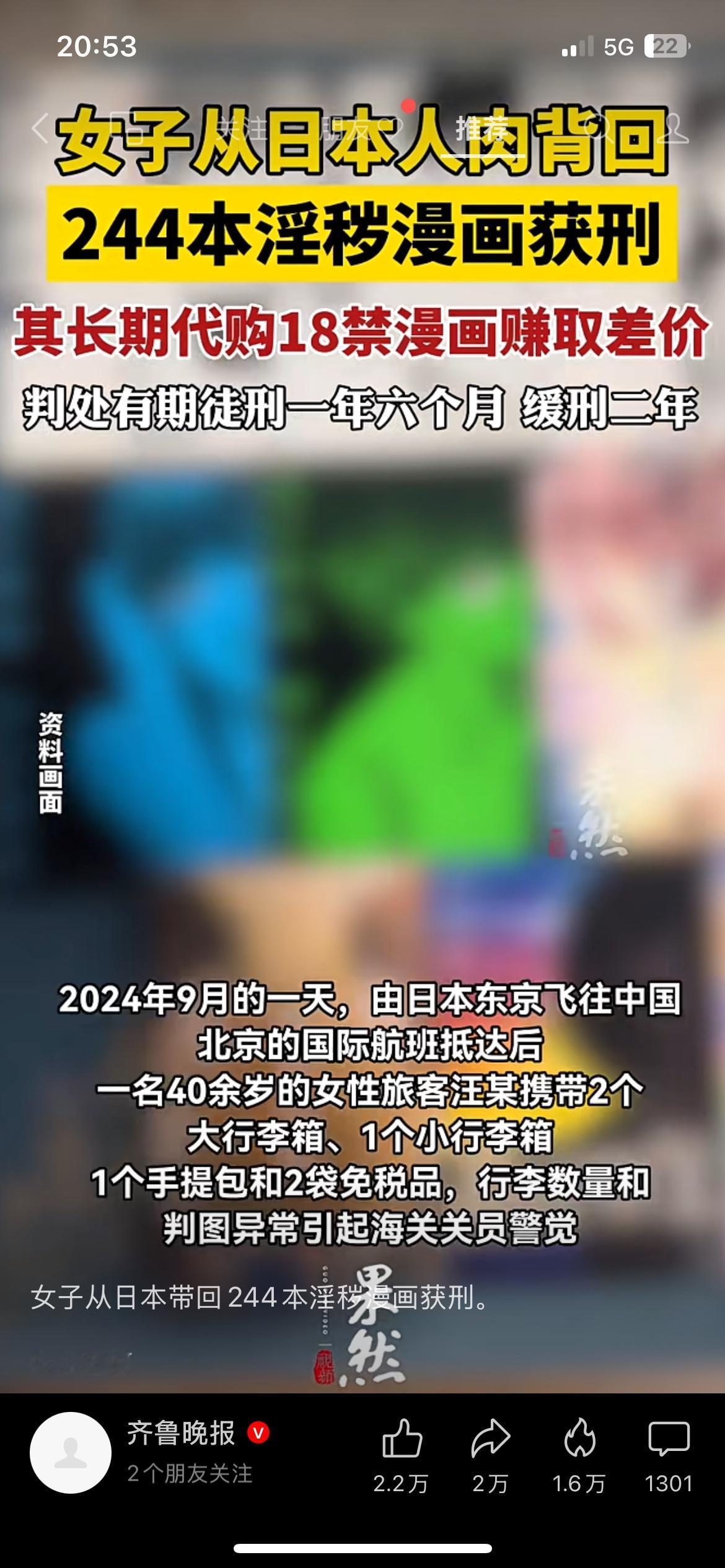 从日本带淫秽漫画入境,长期代购赚差价,女子获刑,别再碰了