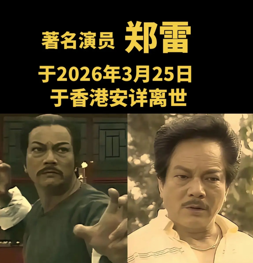 香港演员郑雷3月25日去世,4月12日在香港设灵。