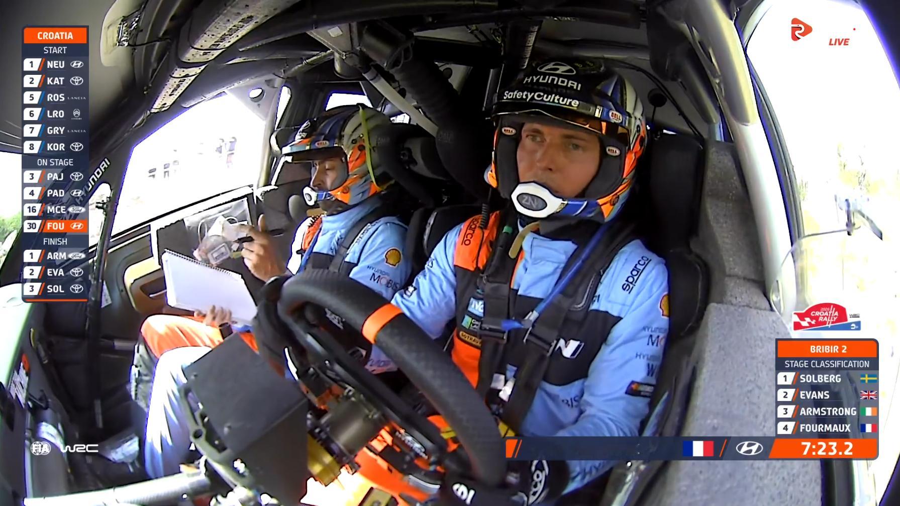 今天下午WRC克罗地亚拉力赛SS18中,阿德里安·福尔莫的领航员亚历山大·科里亚是用手机看路书给车手做的播报工作完成赛段之后,福尔莫在采访中说:不知道路书去哪儿了,我们得找一下,可能在座椅后面吧,这个赛段风景还不错,抓地力比较差