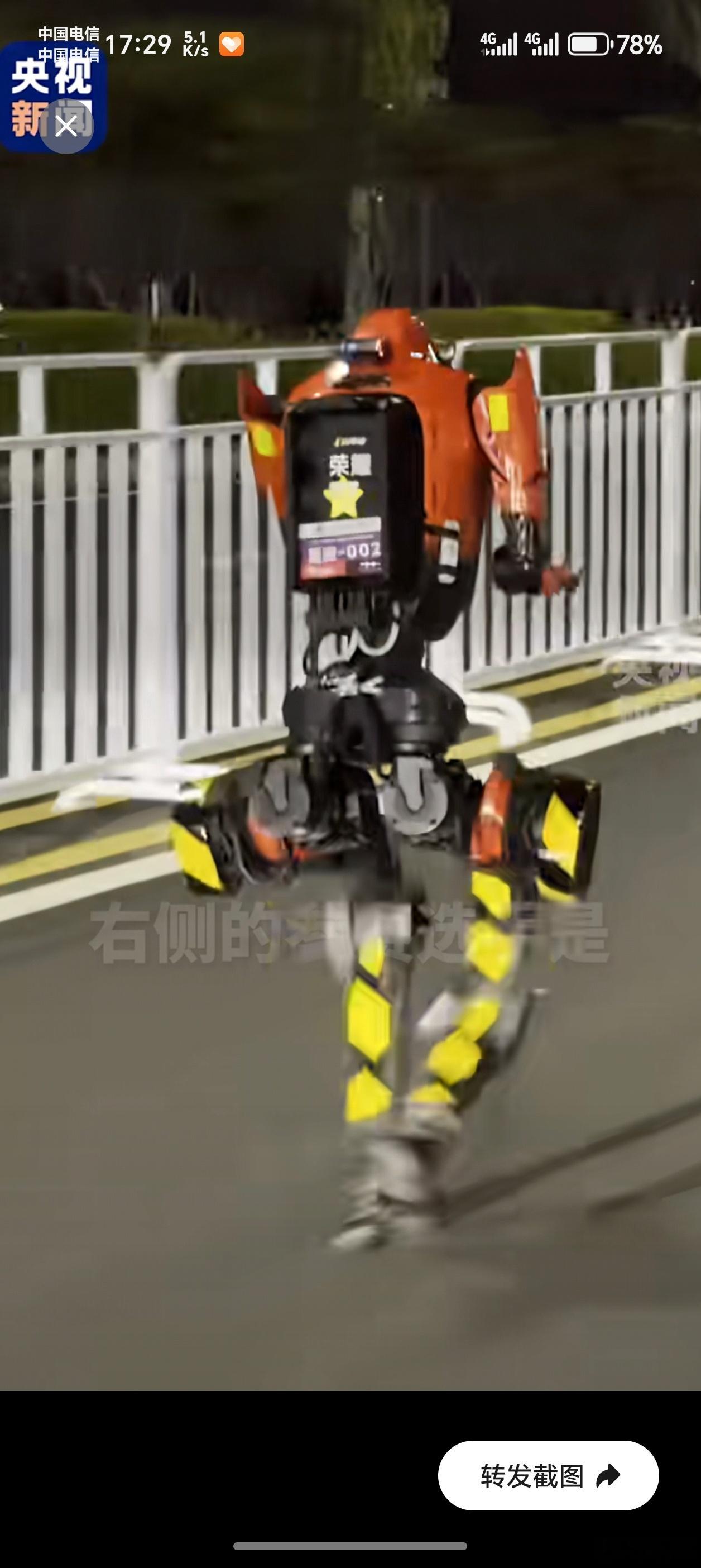 荣耀闪电元气仔征战机器人马拉松今天被耀子的机器人刷屏了,闪电元气仔跑起来速度真快