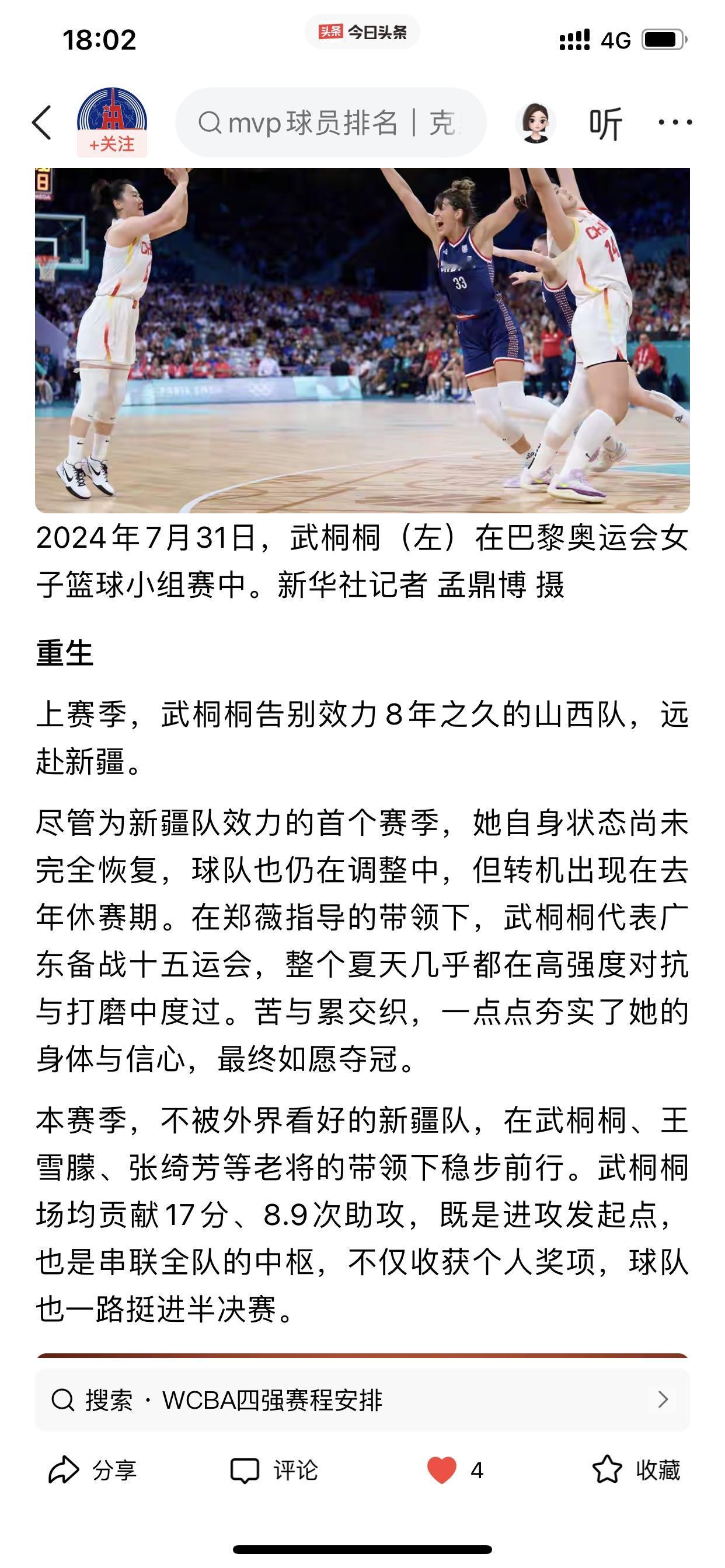 请看下面截图,新华社专题报道WCBA球员武桐桐