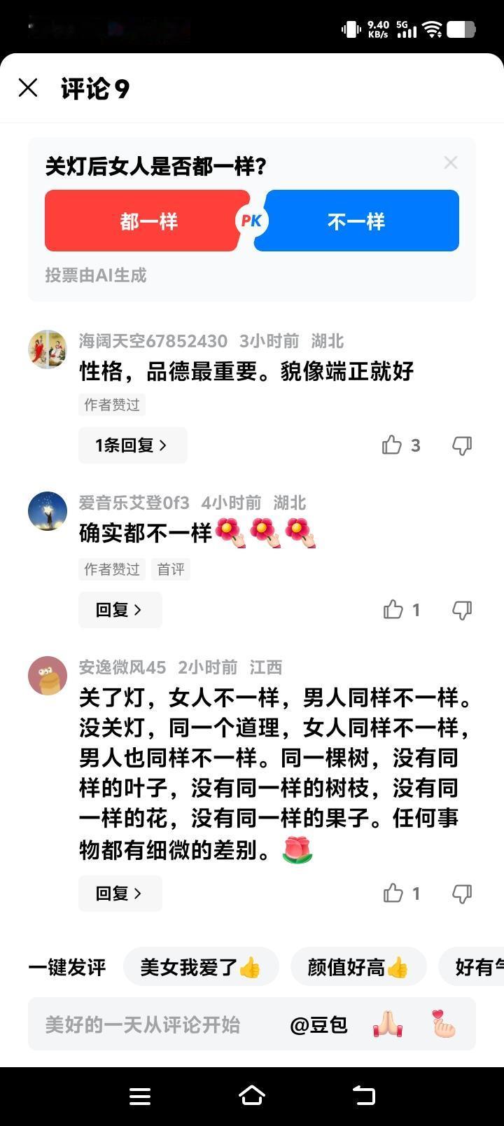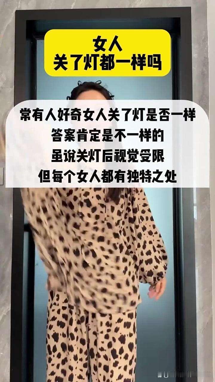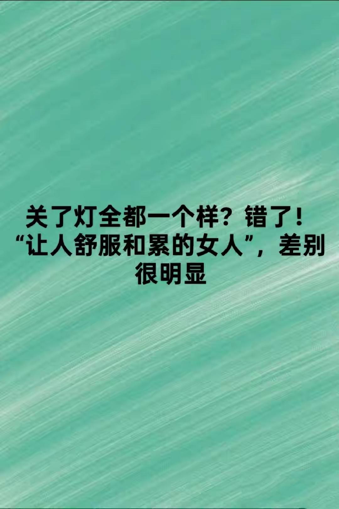 有人说,关了灯,女人都一样。说实话,真的不一样。说句大实话,我以前也听过那句挺糙的话:“关了灯,女人都一样。”可越活越明白,这话不但不对,还挺没见识的。真正在一起过日子,你才会发现——差别大得很。