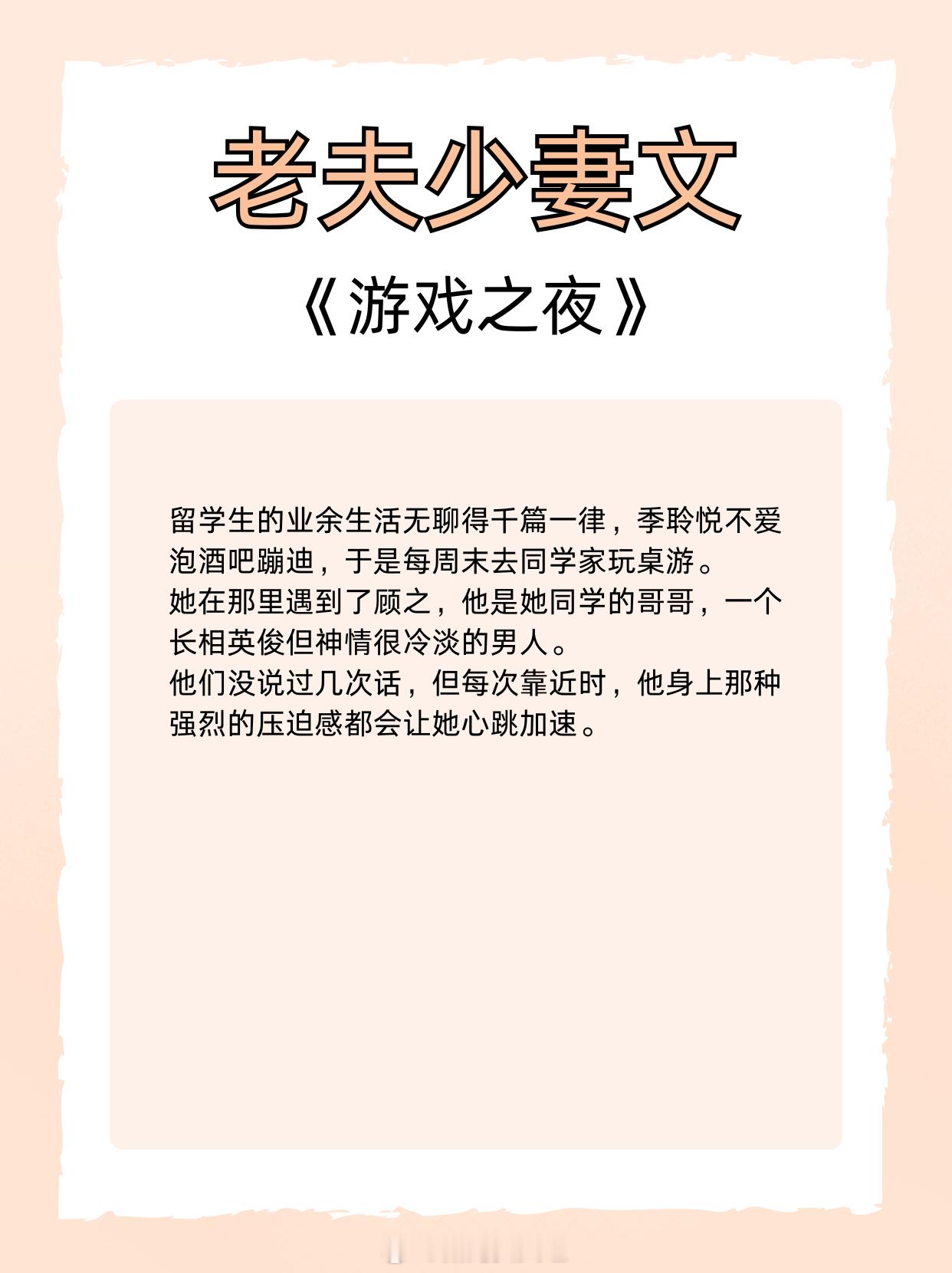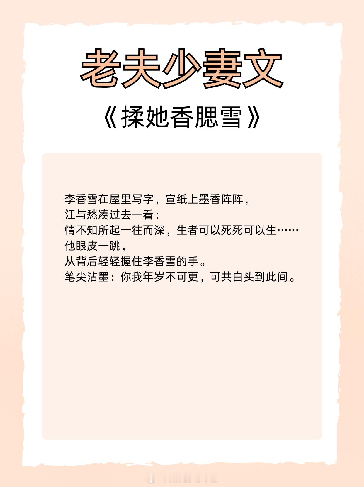 老夫少妻文,宠妻满分!老房子着火,一发不可收拾!1、《失心小岛》 作者:夏诺多吉2、《芒种》 作者:二十四节气3、《他的私心》 作者:大贝壳4、《原地逃走》 作者:一碟芝士球5、《揉她香腮雪》 作者:于樨言6、《游戏之夜》 作者:光路可逆兜兜转转还是这些小说好看 越读越上头的小说神作
