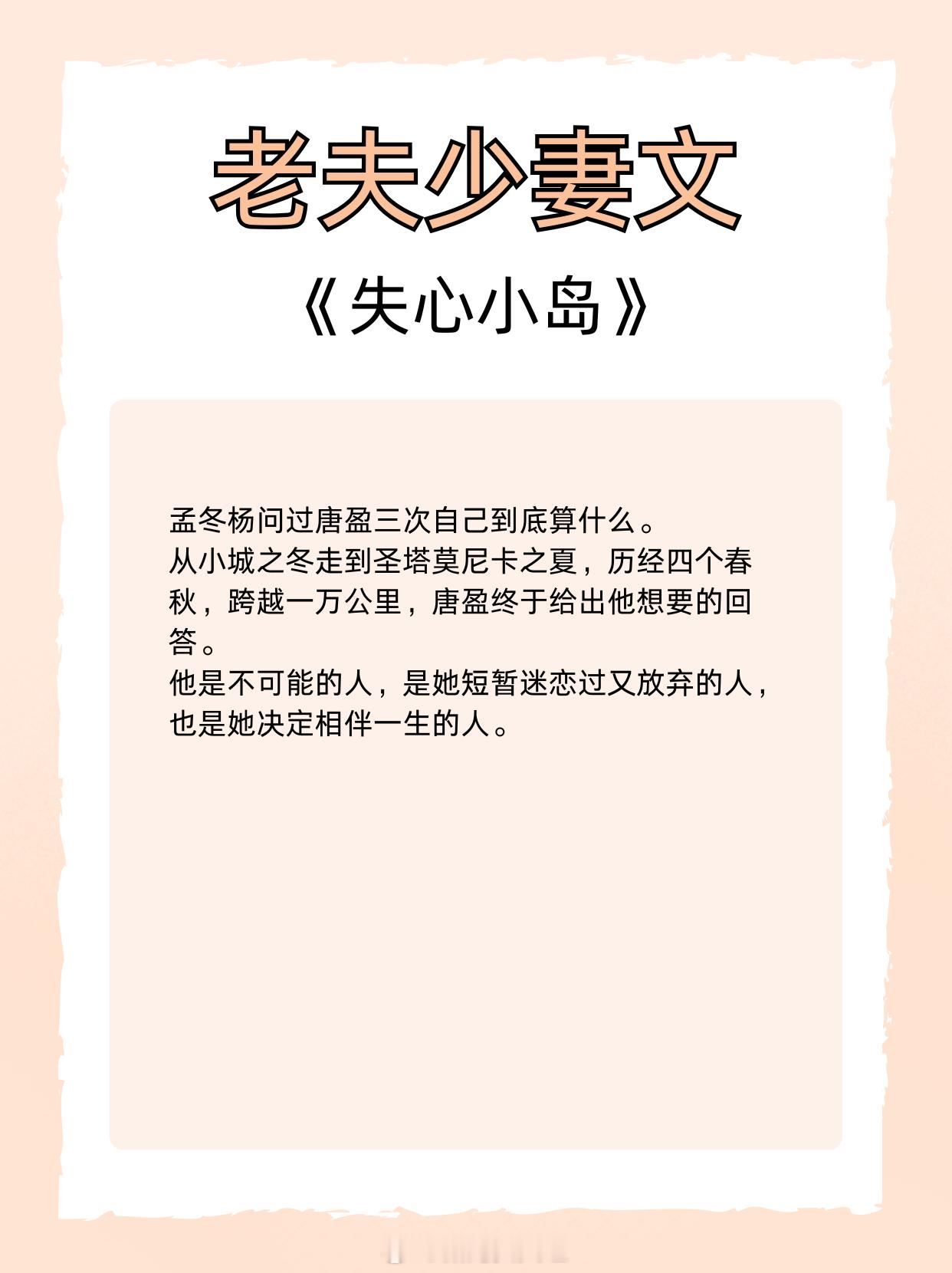 老夫少妻文,宠妻满分!老房子着火,一发不可收拾!1、《失心小岛》 作者:夏诺多吉
