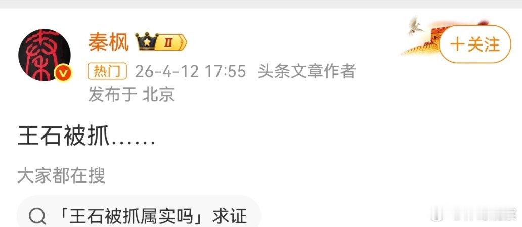 王石否认被抓本尊出来辟谣了,秦枫还没有删。