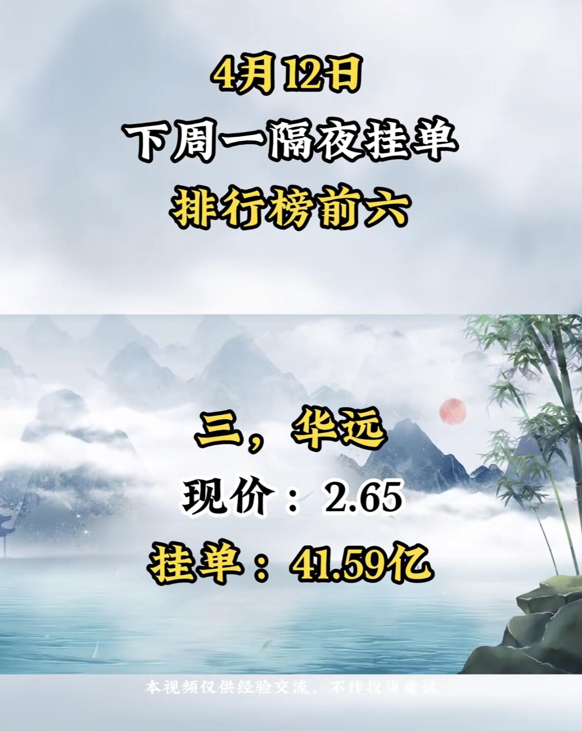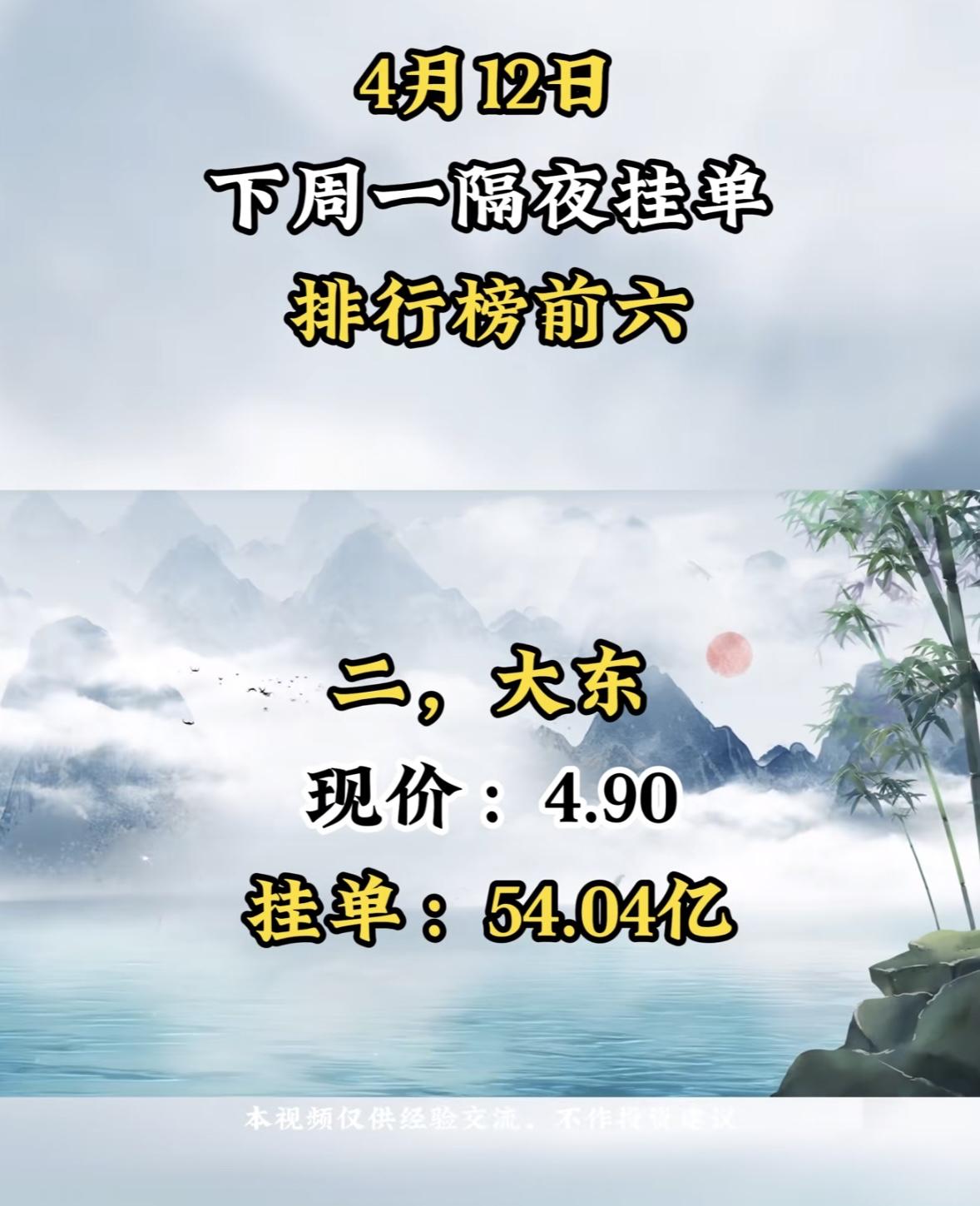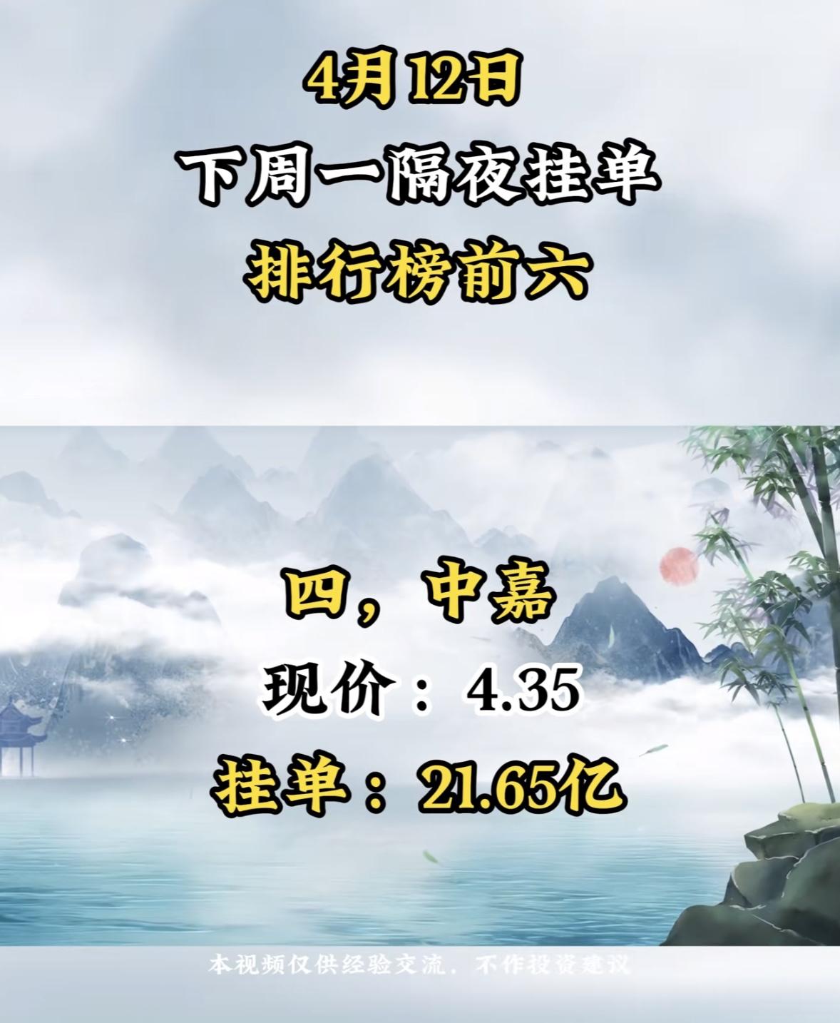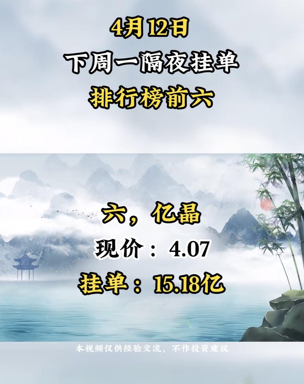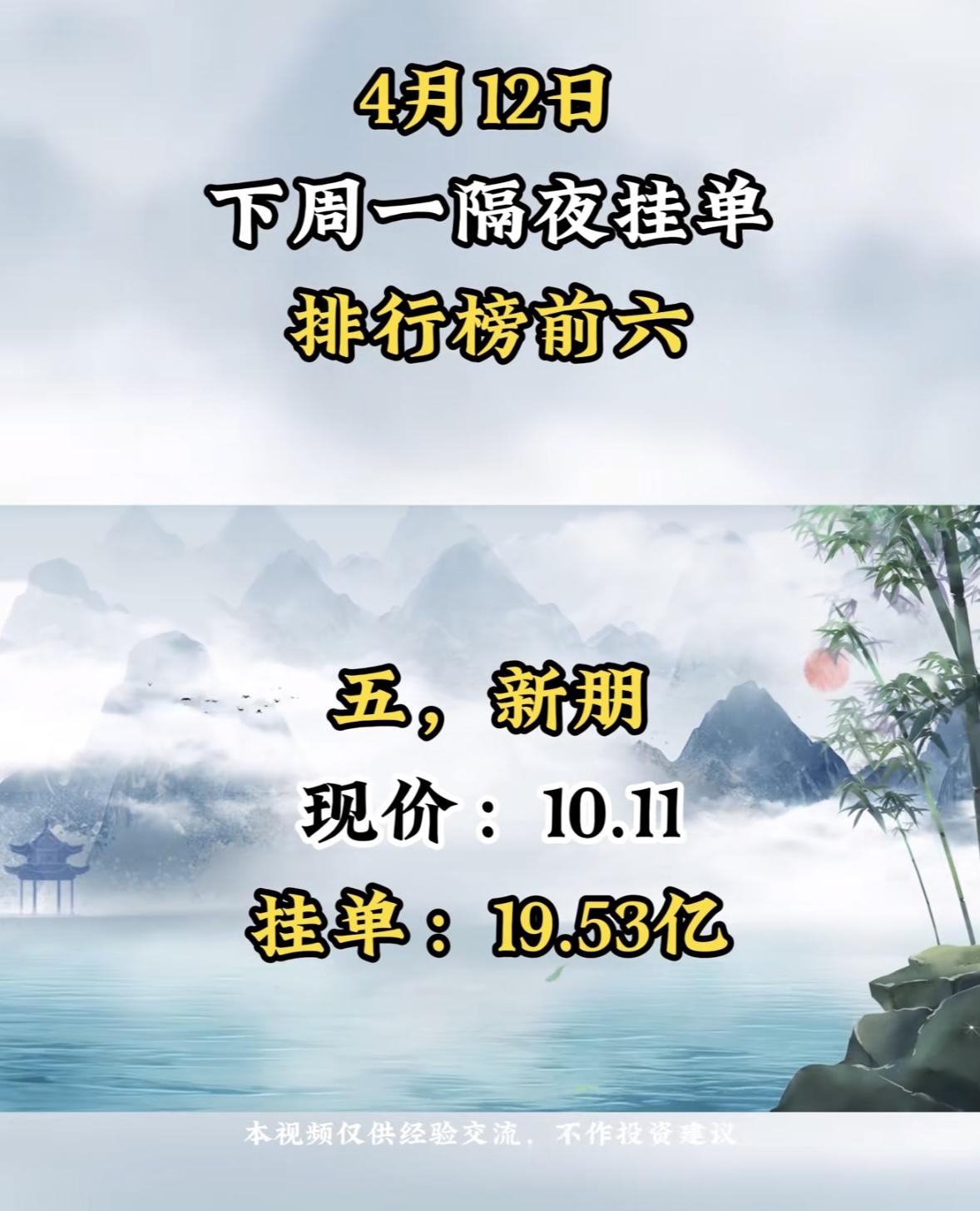 4月13日周一暗盘隔夜挂单排行榜前六揭晓