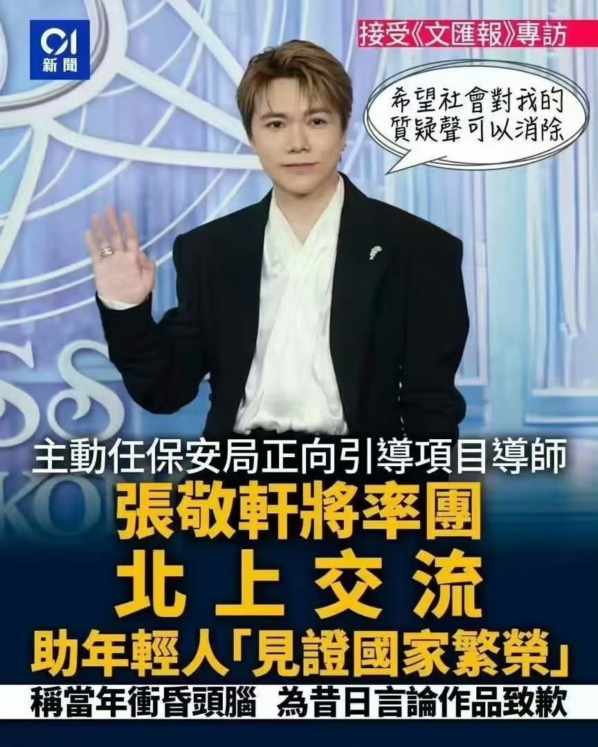 迷途知返,知名香港歌手高调致歉! 4月11日,深陷立场争议多年的张敬轩,以一