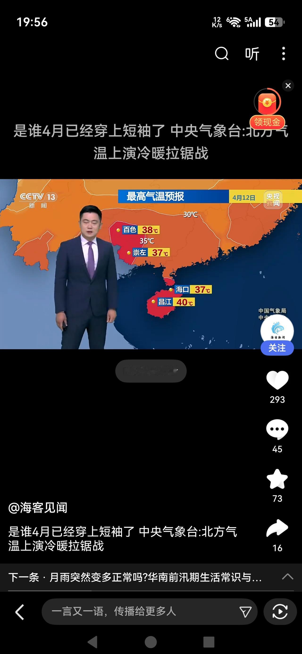 刚进入四月,北方气温一路飙升,不少人早早脱掉厚外套,直接穿上短袖短裤,仿佛一夜入夏。可天气变脸极快,中央气象台最新预警,北方冷暖气流来回碰撞,气温忽高忽低。升温之后马上迎来冷空气,断崖式降温反复上演,一天过两季,昼夜温差极大,春天几乎直接消失。