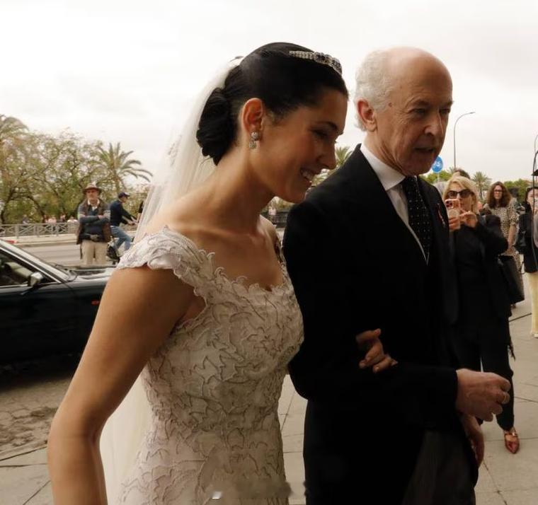 4.11 西班牙普埃布拉·德·卡萨拉侯爵的孙女卡拉·本胡梅亚(31岁)与安东尼奥·多梅克(著名马球运动员伊格纳西奥·多梅克的儿子)在塞维利亚圣母玫瑰教堂成婚卡拉爷爷有13个孩因此爵位轮不到她爹菲利普,但菲利普曾在家族能源企业Abengoa话事多年,2016年起搞自己的能源企业H2B2也有声有色婚礼没啥熟脸来宾,单纯看个热闹~