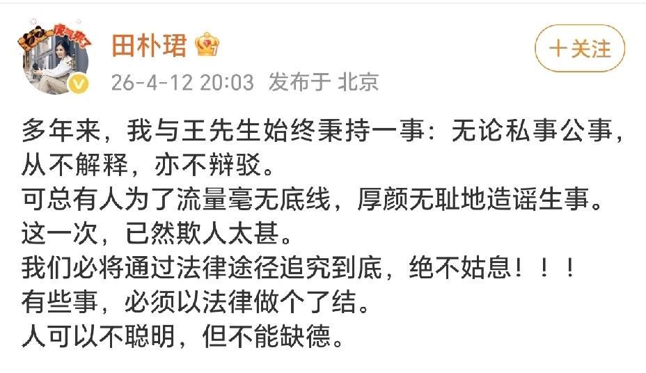 田朴珺发文说他们本就低调,不喜欢理会这些,但这次是欺人太甚。