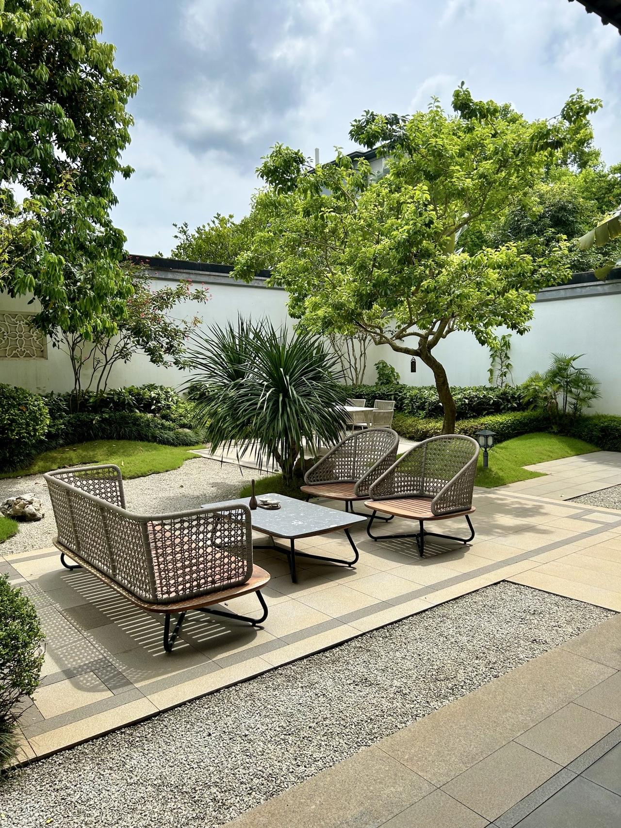 这里关上门就是自己的一片小天地,在院里抚琴、看书,等日落、摆弄花草,每天让身体流点汗,真的舒服又自在海南 海口 别墅 院子