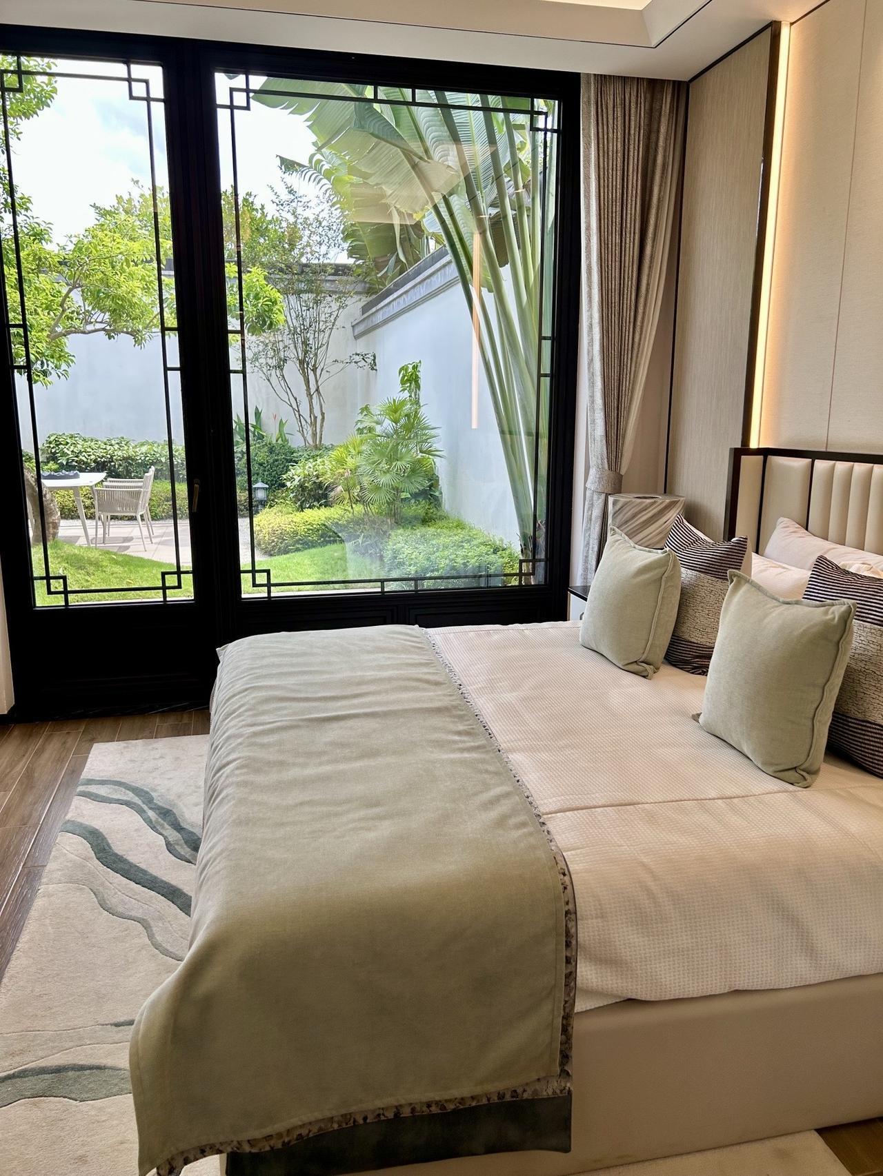 不是在杭州,而是在海口的中式别墅,也是海南为数不多的纯中式别墅区,就在江东新区。房子是133平的,家里却有90平是院子,院里有凉亭、水系、绿植都是做好的,把中式风格发挥到极致,一进门就好像穿越到了江南人家的院落里。
