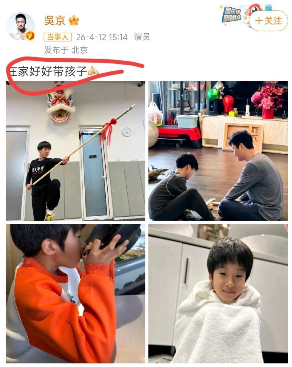 战狼吴京居然真的在家当全职奶爸了,今天倪萍在乘风直播里一嗓子喊吴京好好在家带孩子,他立马晒照配文在家好好带孩子,直接坐实了这件事