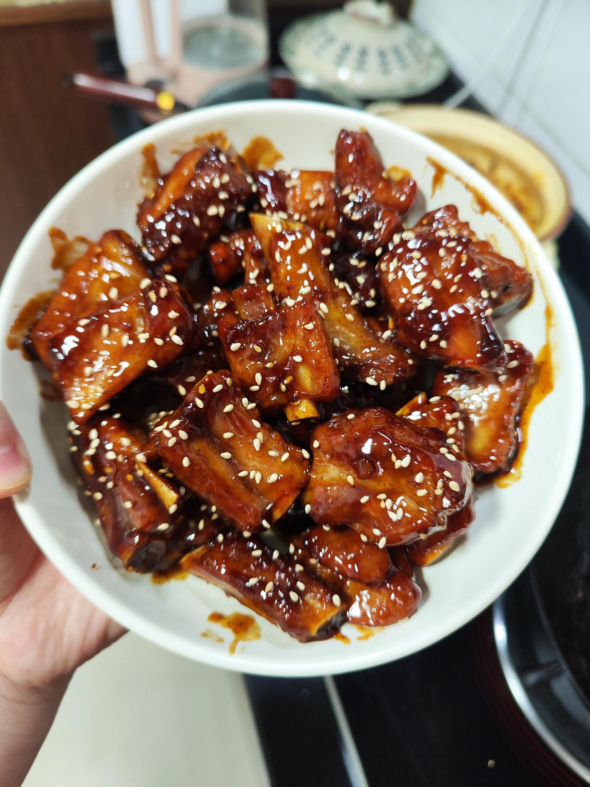 每一块都晶莹剔透,裹满浓稠酱汁,撒上一把白芝麻,香到犯规[彩虹R],光看这红润油亮的色泽,食欲直接拉满,配米饭我能炫3碗