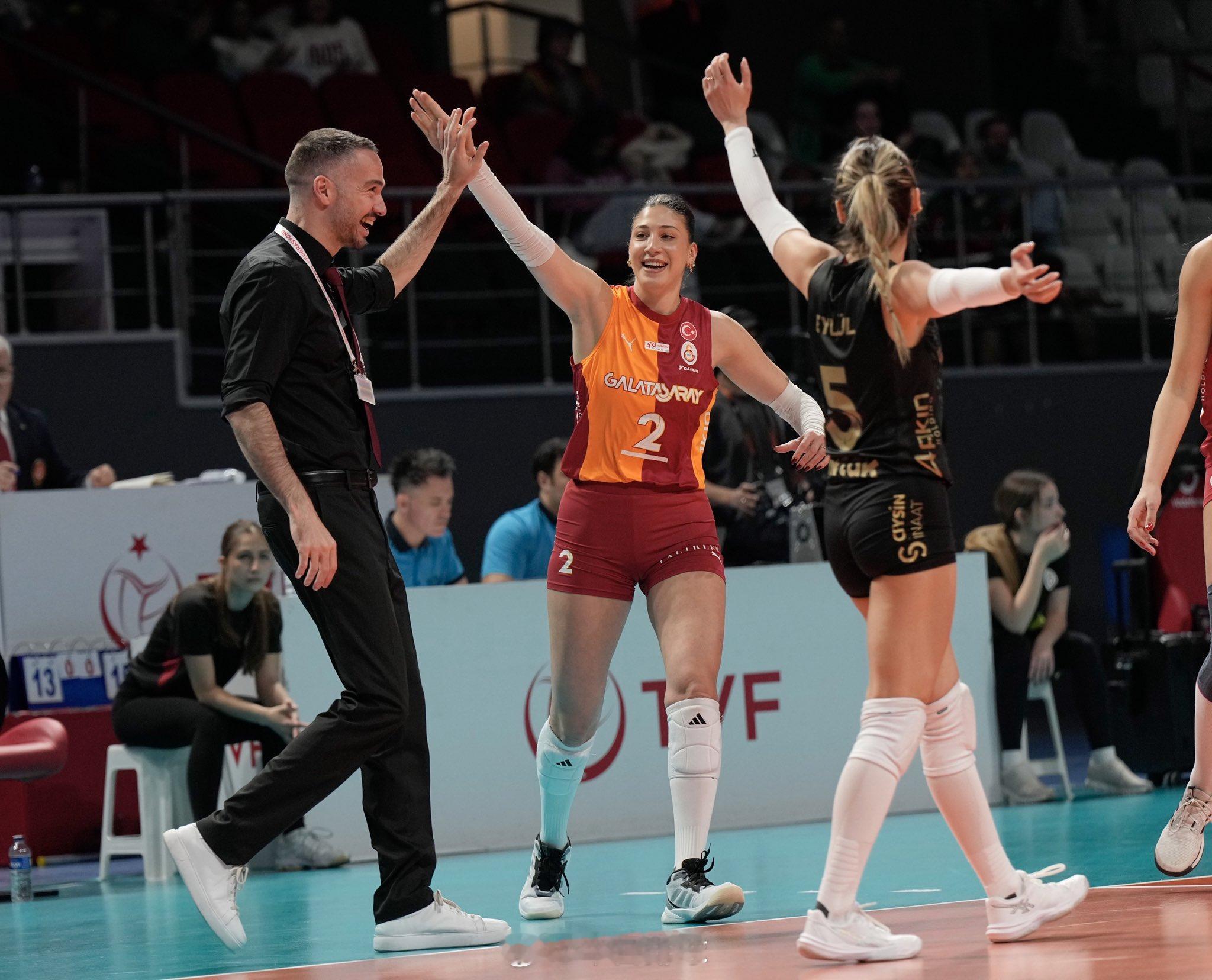 【女排土超 加拉塔萨雷晋级五、六名决赛】北京时间12日晚上,2025-2026赛季5~8名半决赛第二场,加拉塔萨雷在主场以3-2(25-20, 21-25, 21-25, 25-15, 15-9)战胜土耳其航空,在三场两胜制的系列赛中以2-0胜出,晋级五、六名决赛。伊尔金22分,王媛媛 12分(12扣4中0失误被拦、拦8),卡鲁塔苏11分,居维利9分,弗兰蒂7分;伯格曼15分,阿克索伊、奥斯曼各13分,尼科莱蒂、基里斯利(拦4)各10分。