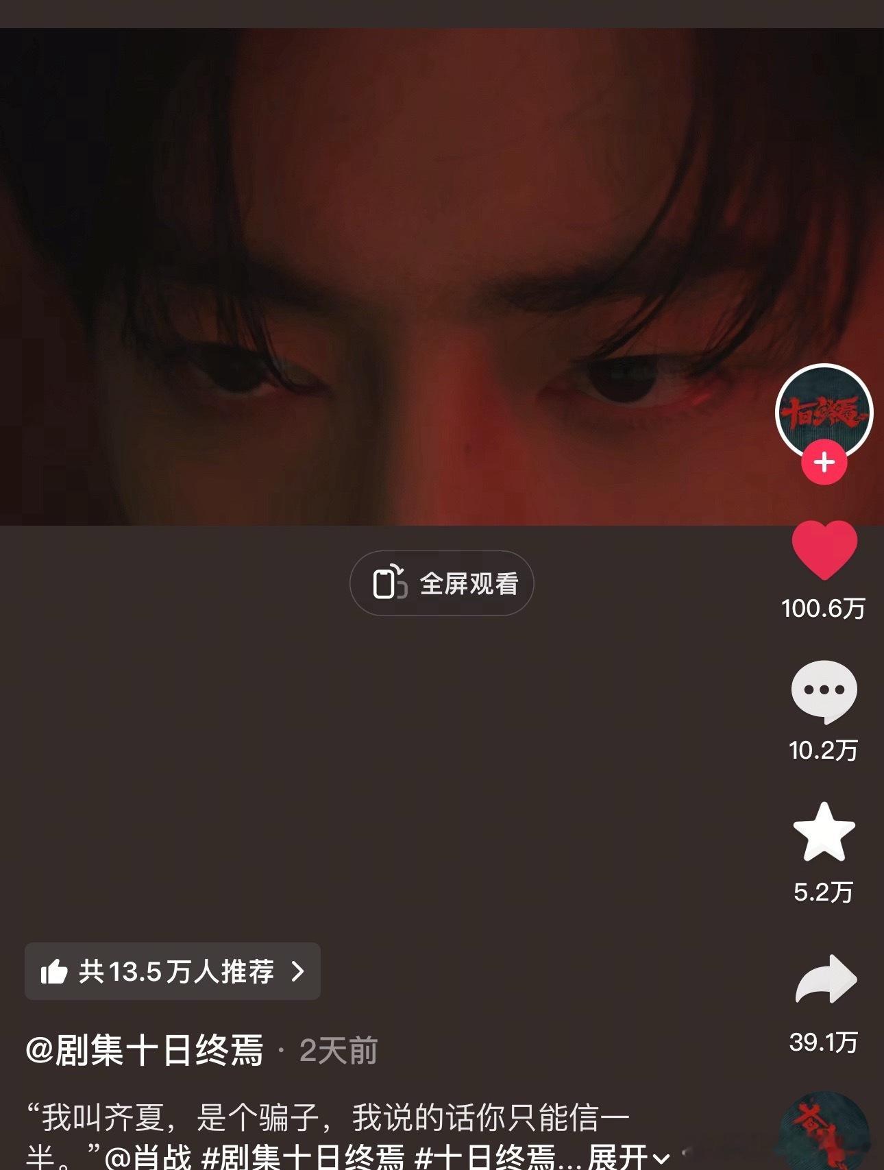肖战《十日终焉》官宣仅两天🫘破100w👍,天选之人了