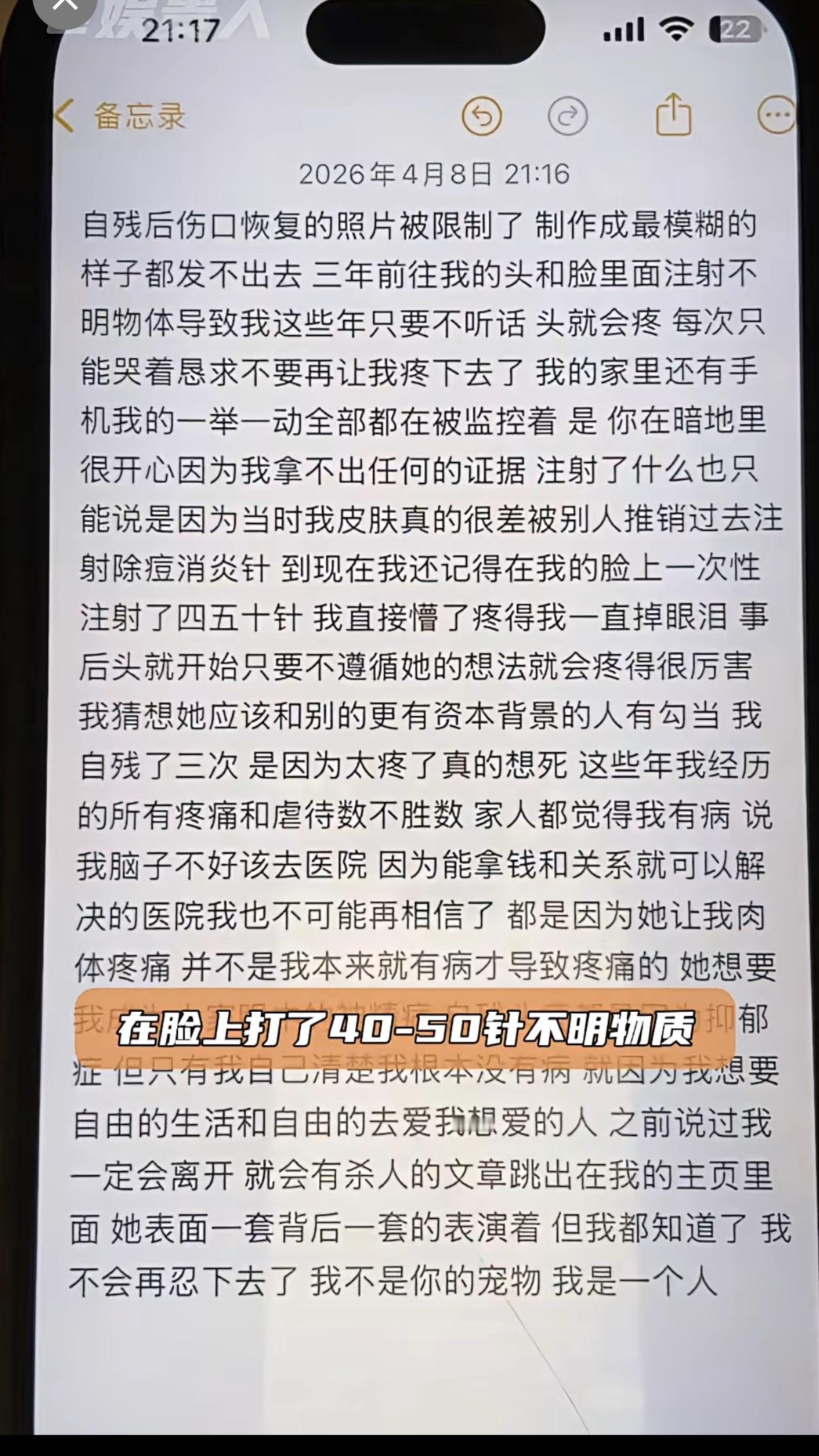 金子涵深夜直播求救!自曝被注射不明物质、全程被监控 细思极恐