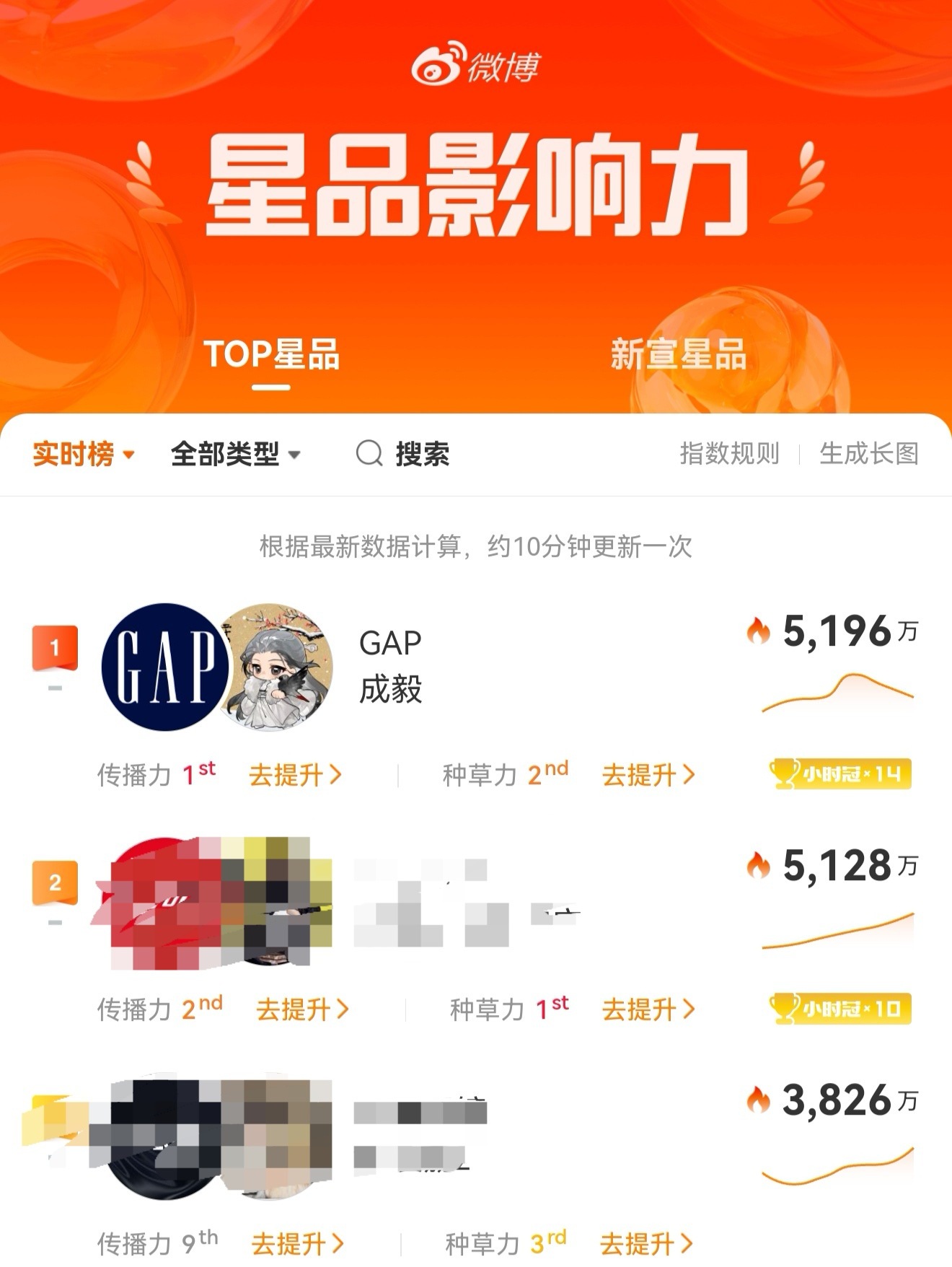 成毅GAP登顶星品影响力 ,ie活人好多啊,切土豆丝的同时,还能星品冲到登顶, iejj真的很牛没有关方znz,全是散粉在自己行动。虾大粉和脂粉全部下场时,就已经输了,因为虾的geigei已经没有活粉了。从来没有见到一个顶流商业价值是负数,影视数据是负数,活粉是负数,除非它是倒沾