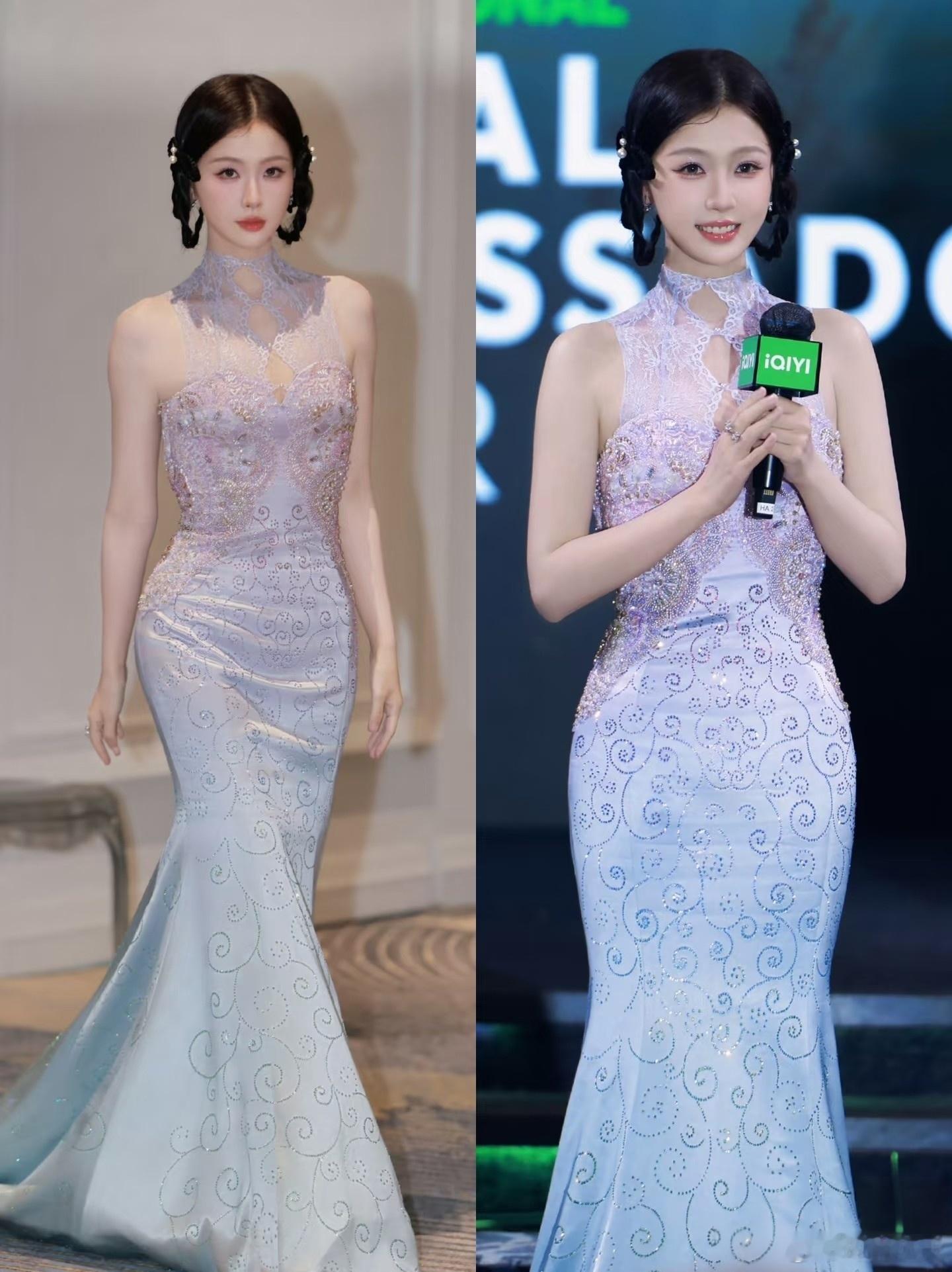 虞书欣的刺绣透视裙显得腿部线条感好美!