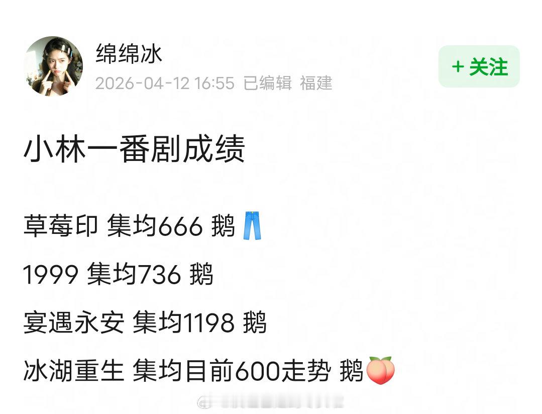 李昀锐一番剧成绩,现偶大IP草莓印和古偶S+冰湖重生都扑了,上限1200下限600,没有国民度也没有剧粉盘。现在看来接下尚公主是最正确的决定,和孟子义合体拍戏自带热度,和关晓彤的现偶看着也有爆相,与其急着一番单扛,不如多和流量花合作吧。