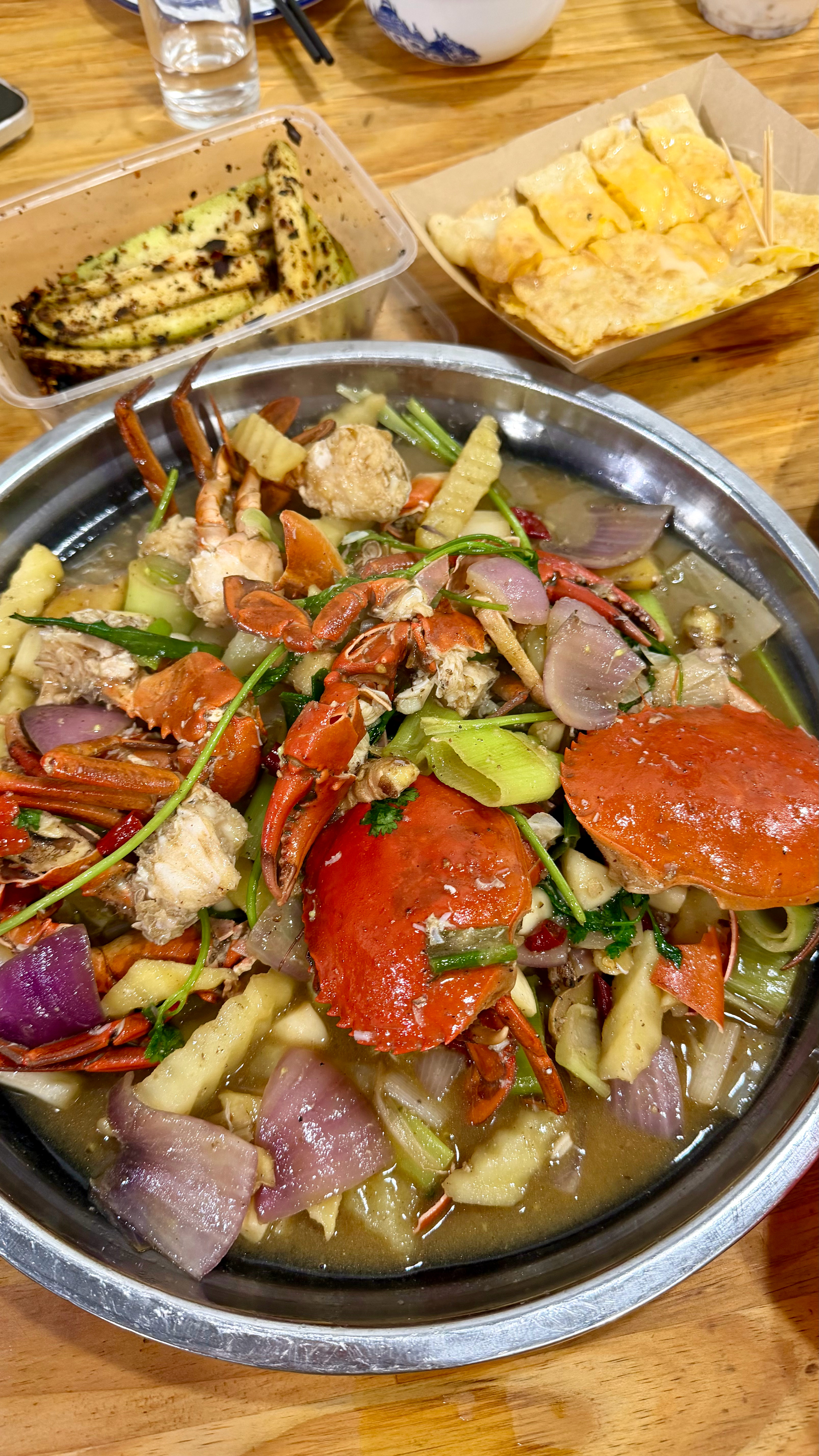 来芒市过泼水节,热闹又惬意。闲暇之余尝尝新鲜活螃蟹,味道不错,过节放松一下,简单