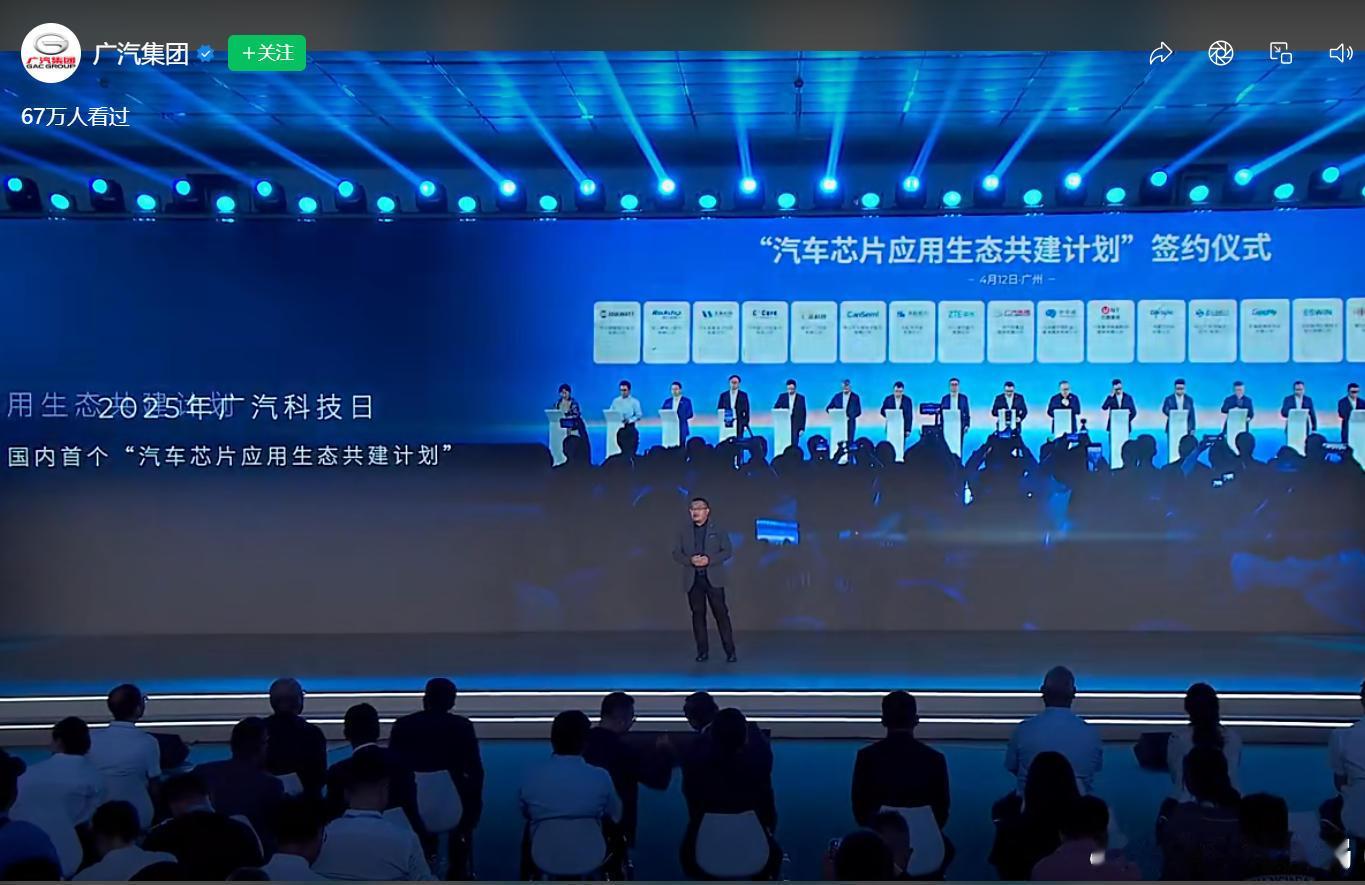 5、“中国芯”里程碑:联合105家生态伙伴攻克关键技术,发布车规级芯片联合研发成果,实现从核心计算到传感芯片的全链路自主可控,首搭昊铂GT攀登版,成为国内首款芯片100%国产化智能车。广汽发布星源超级双擎技术