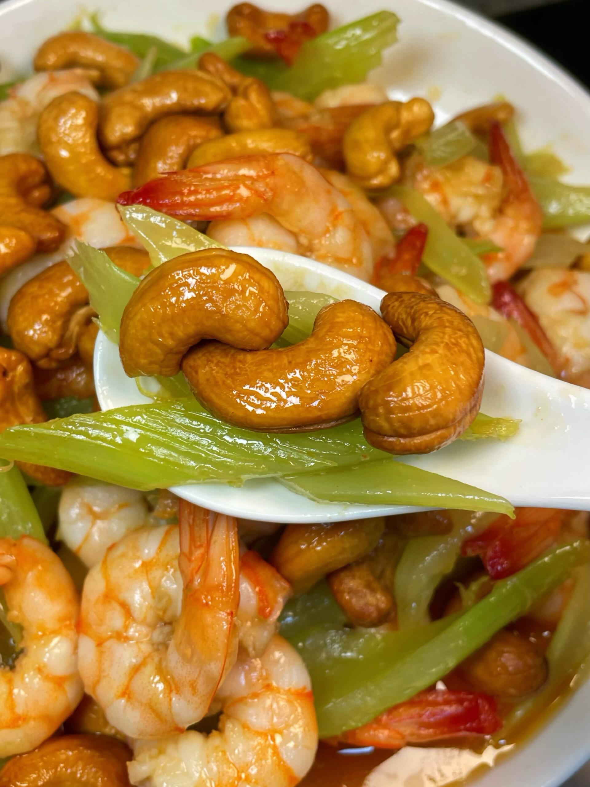 虾仁Q弹鲜嫩,咬一口爆汁不柴;芹菜脆爽清甜,没有一点涩味;腰果炸得香香脆脆,越嚼越香,三者搭配在一起,口感层次直接拉满,清爽又入味,好吃还不负担!