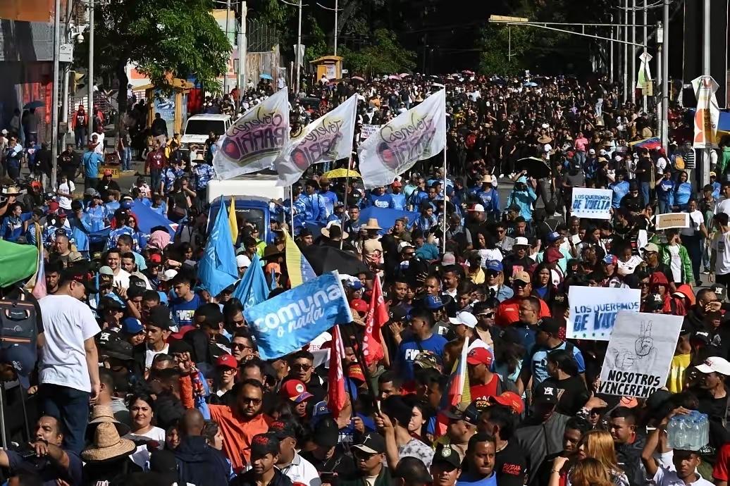 加拉加斯、马拉凯、库马纳等多个城市同时爆发抗议。数千民众走上街头,举着“拒绝饥饿”“还我工资”“释放马杜罗”的标语,直接冲向总统府。警方用催泪瓦斯和警棍镇压,现场爆发激烈冲突,很多人受伤被捕。