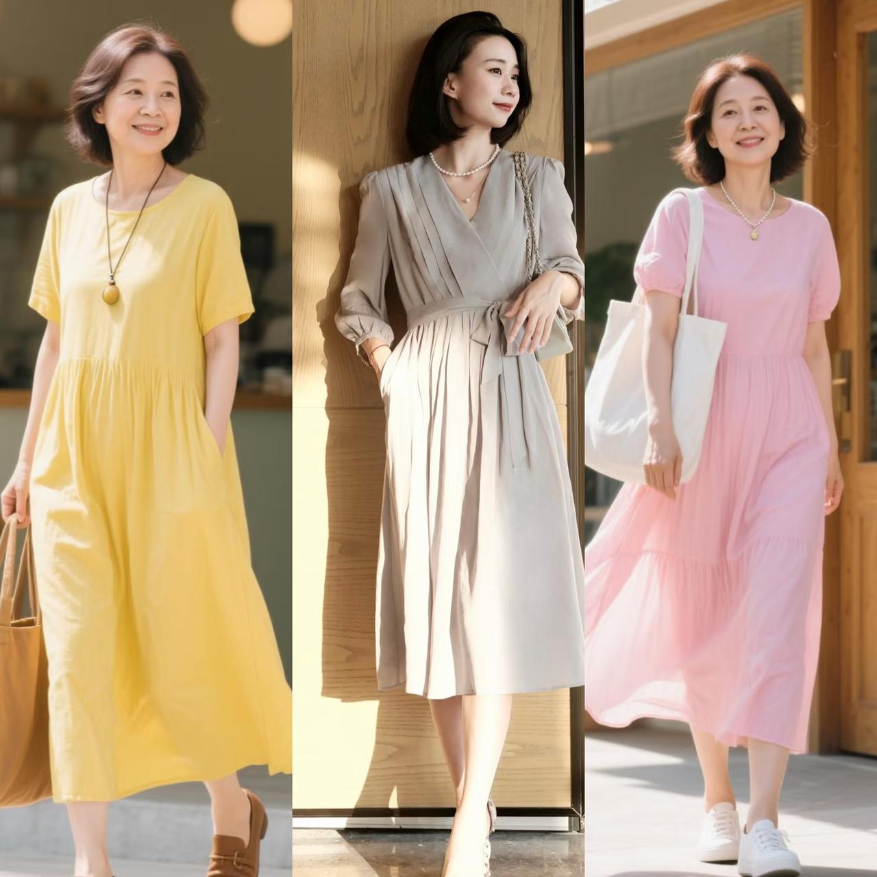 四五十岁女性春夏穿连衣裙别总是穿深色了,尝试这些色彩,让你瞬间年轻十岁