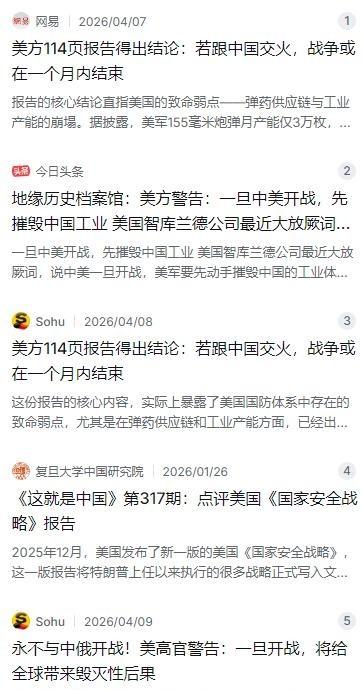 美警告一旦中美开战!先摧毁中国工业!此前,美国兰德公司分析报告指出,中美要是开打,美国得先把中国的工业体系炸个稀巴烂,尤其是东北那些老工业基地,必须全部炸毁!