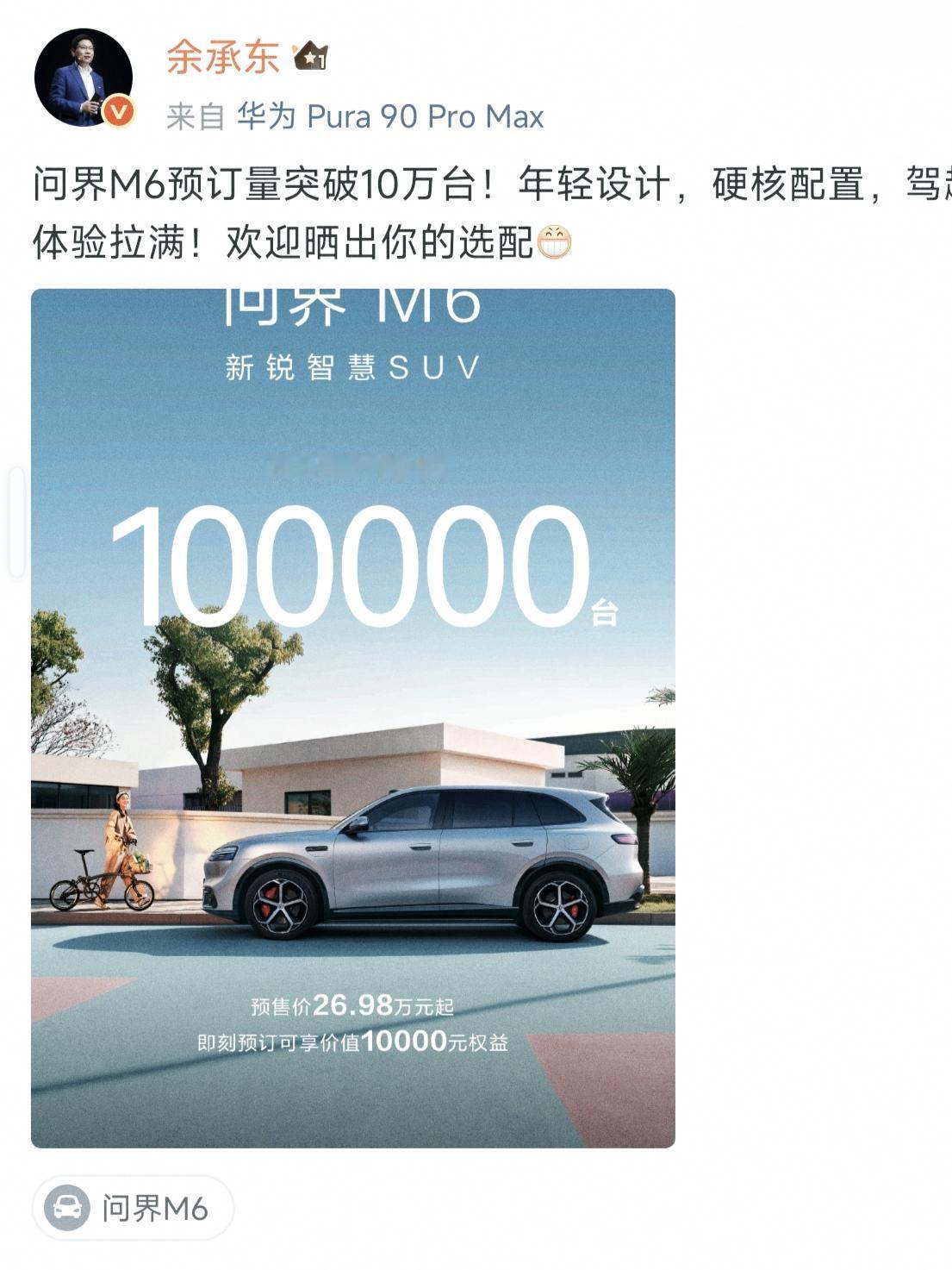 2,问界M6突破100000台