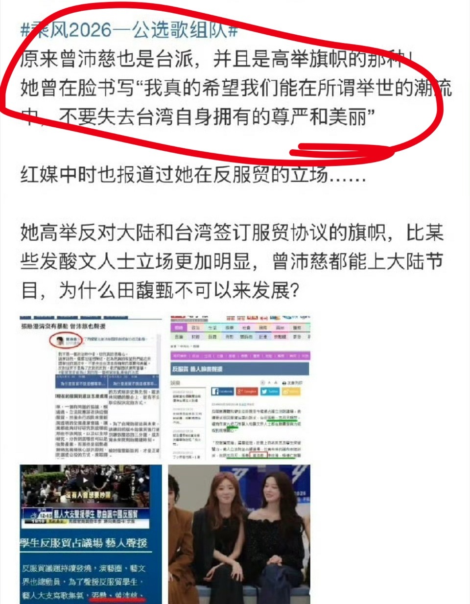 有人说曾沛慈疑似因为立场问题要退出浪姐了……芒果台都不做背调的吗?还有那个徐洁儿