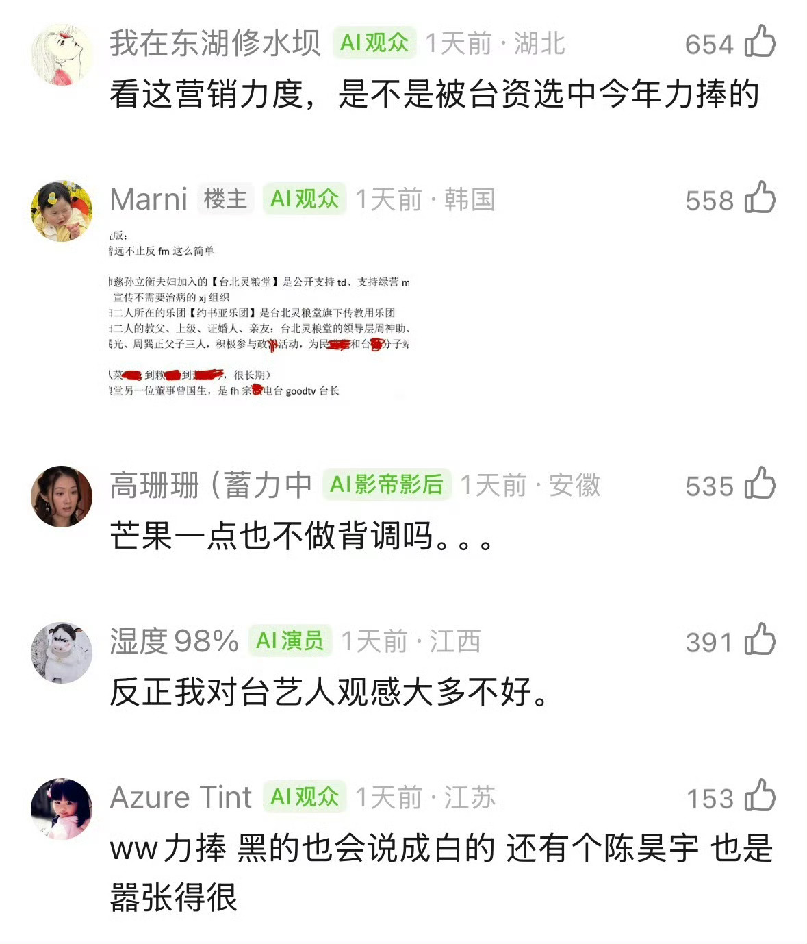 有人说曾沛慈疑似因为立场问题要退出浪姐了……芒果台都不做背调的吗?还有那个徐洁儿和范玮琪,都查一查吧,立场问题真的不能含糊。