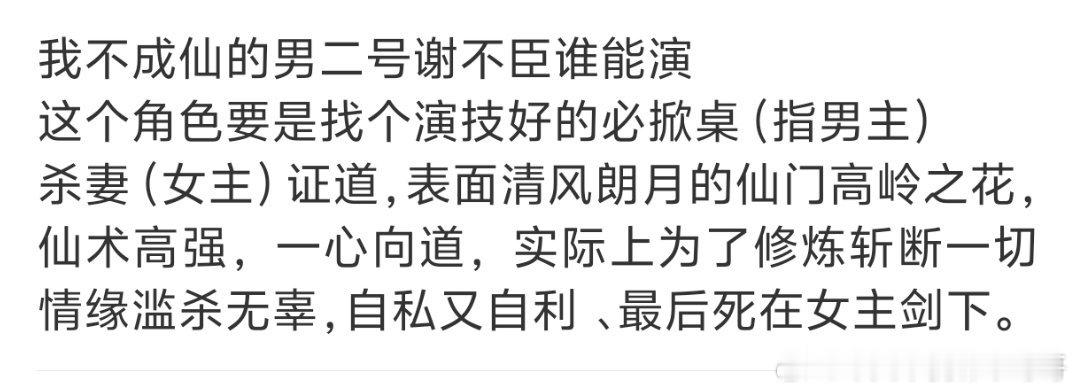感觉我不成仙男二人设看起来容易掀桌,但对演员要求很高,长得丑或者演技差就会像单纯的反派