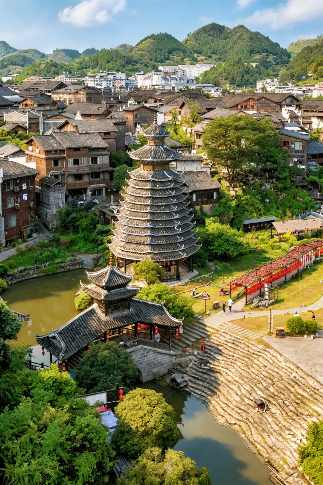 风雨桥➠ 下司牌坊➠ 苗族寨门➠ 芦笙广场➠ 古戏台➠ 明阳书院➠ 禹王宫➠ 惜字塔➠ 莲心桥➠ 大码头➠ 游船
