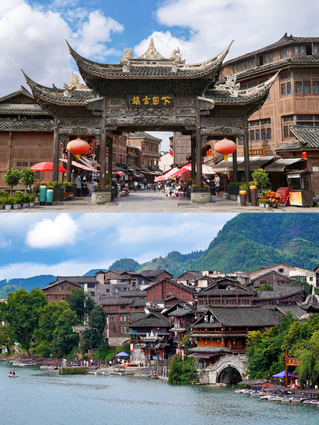 马头墙不输徽州,飞檐翘角间,又藏着苗侗的风雨楼与吊脚楼