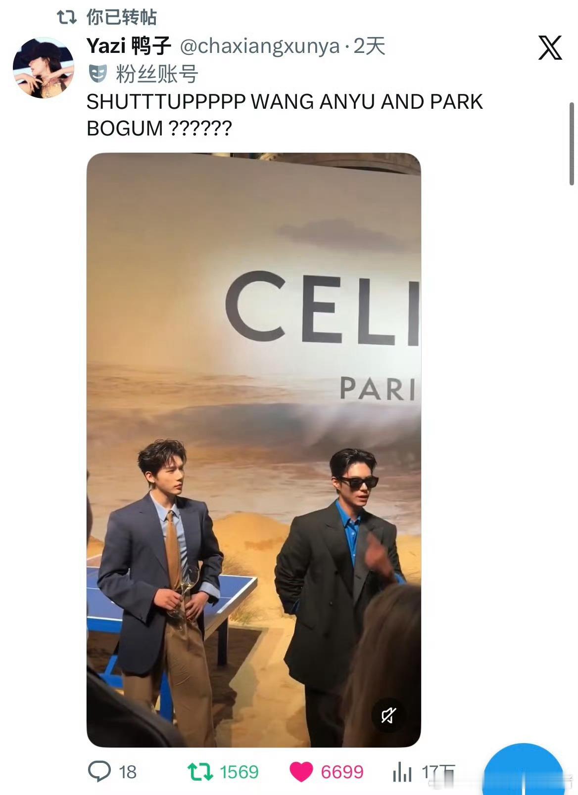 王安宇朴宝剑celine同框海外热度好高啊