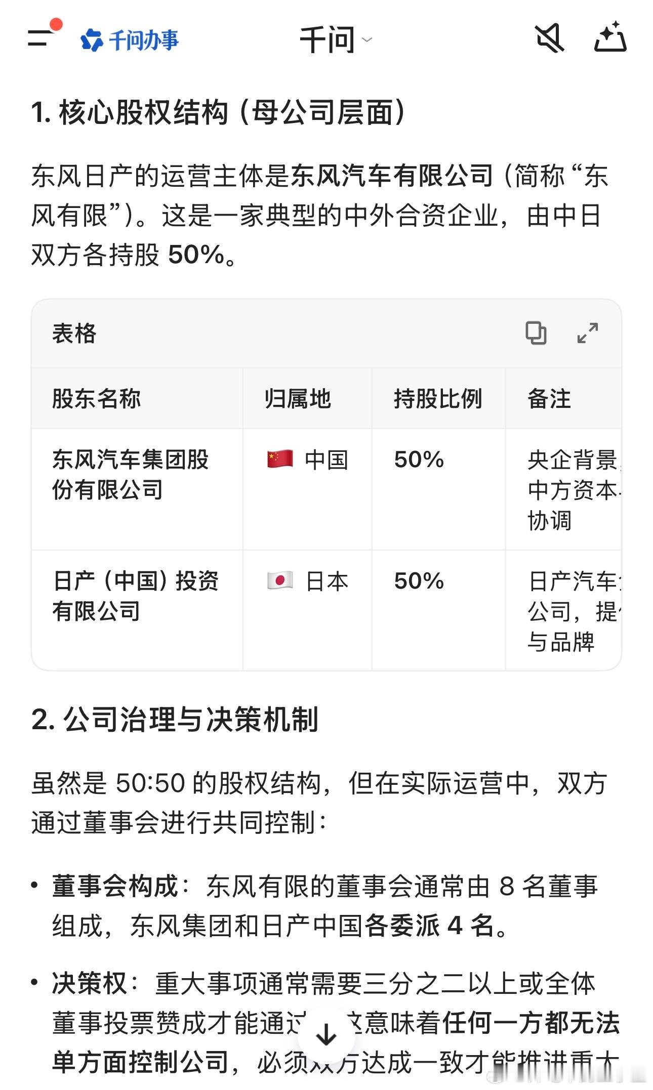 大v聊车我和汽车的日常东风日产 不针对任何人哦今天有关东风日产的股权架构我专门查了下阿里千问