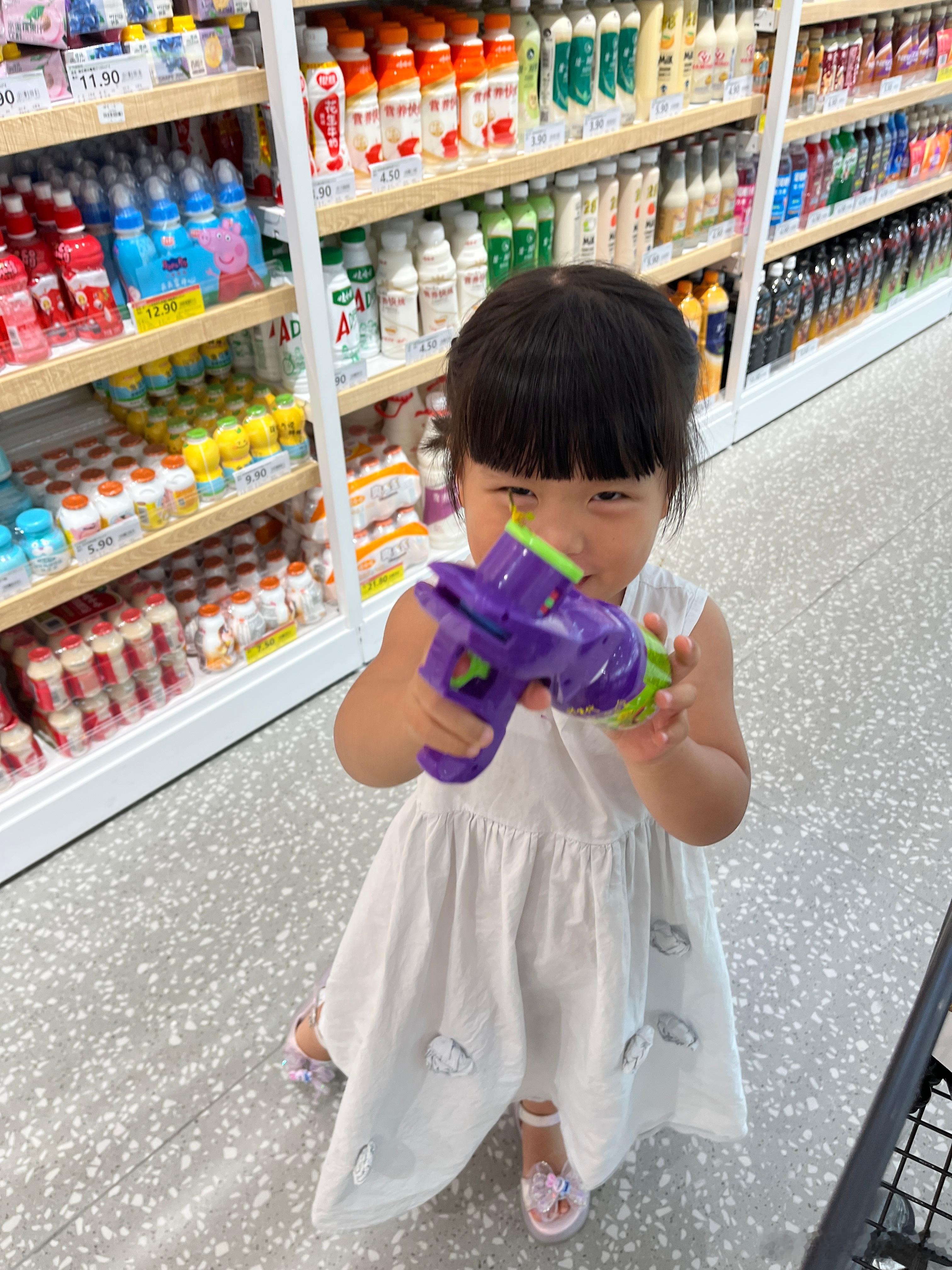 后面又要买酸奶水枪,也不可以(委屈的样子,装可怜🥺)今天吃零食超标了,而且这种添加剂太多。