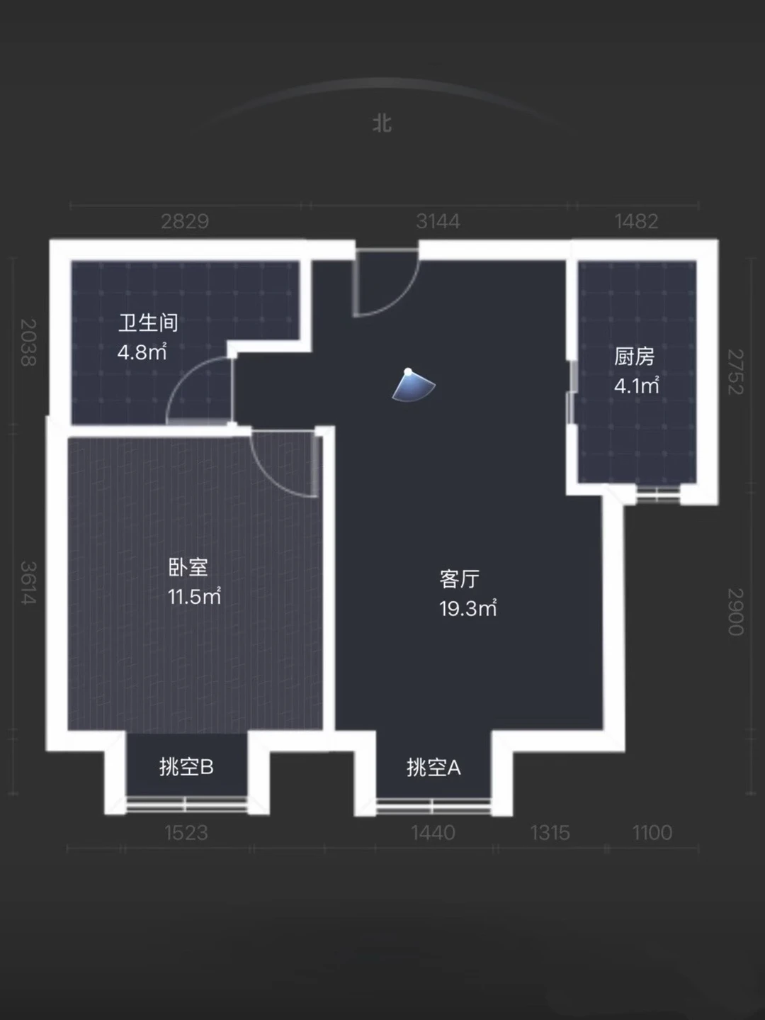 一室一厅独立厨卫比较方正的户型