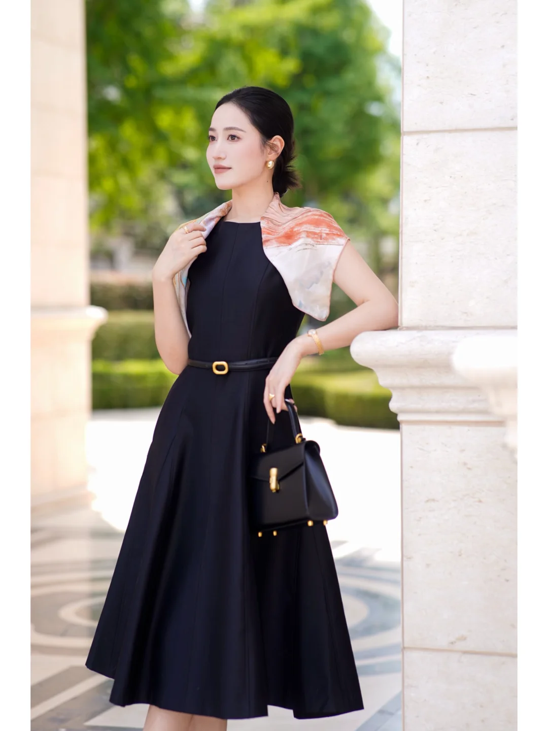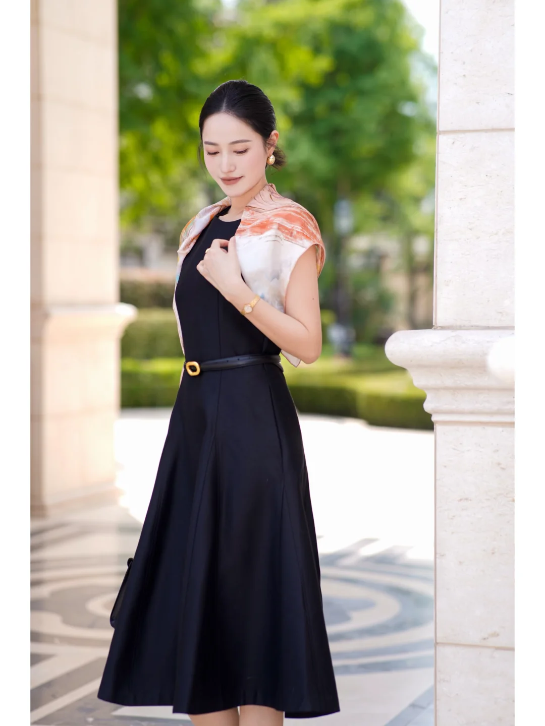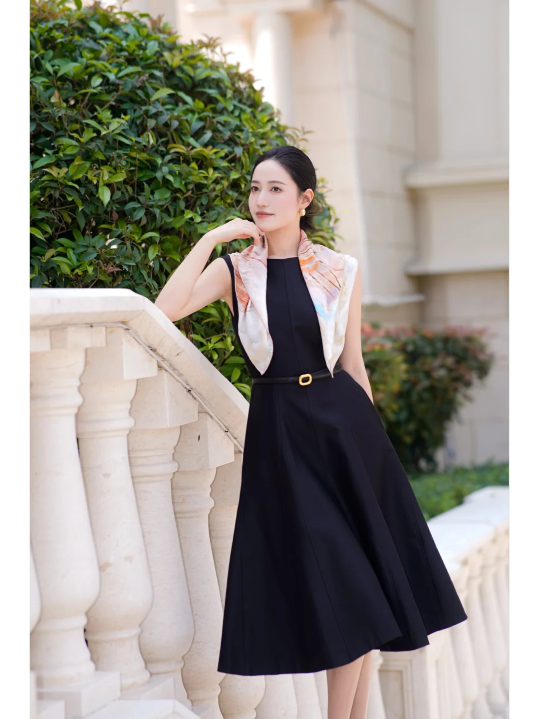 丝巾真的是黑白穿搭的点睛之笔