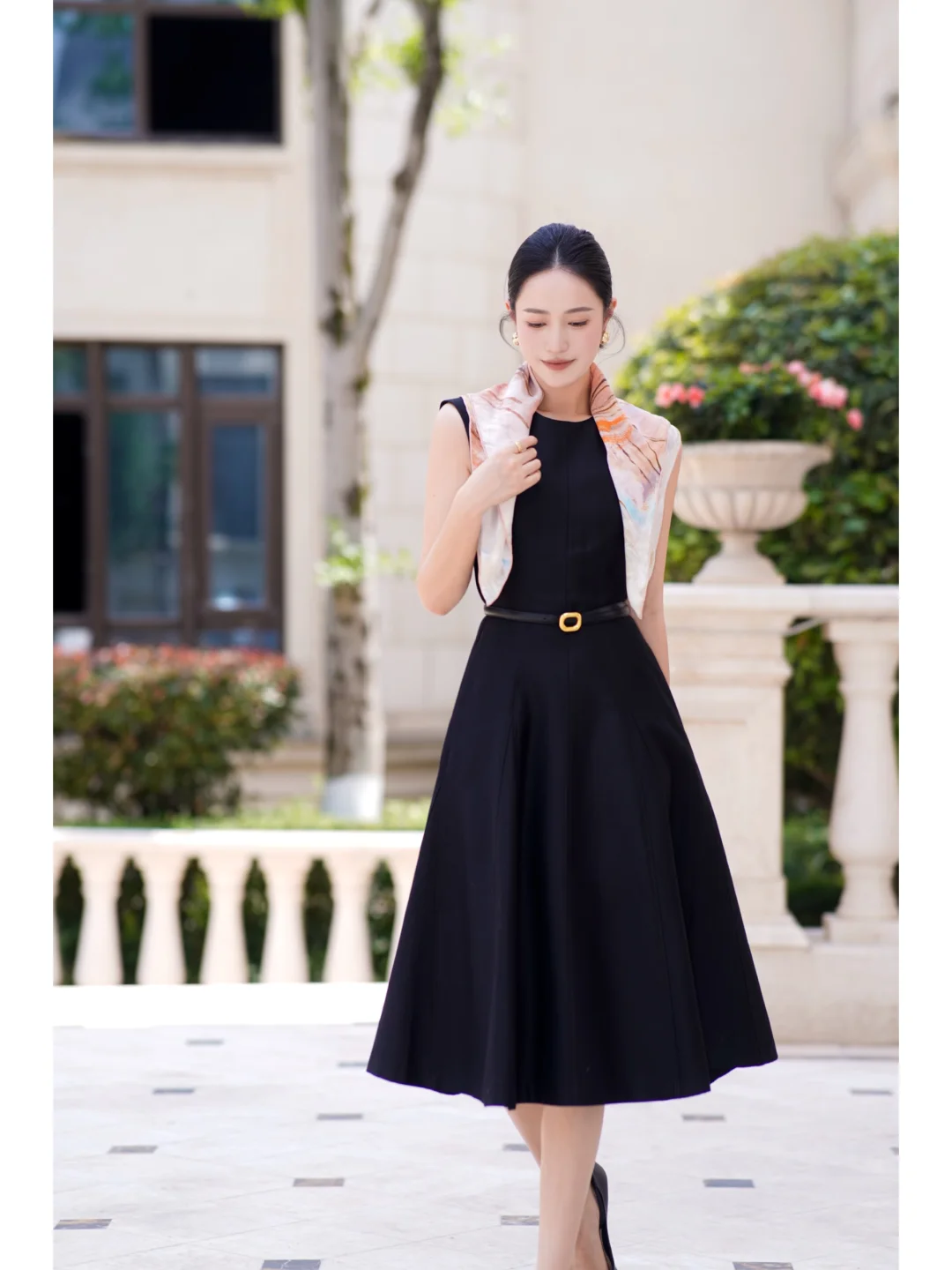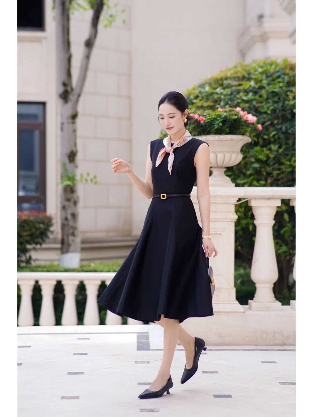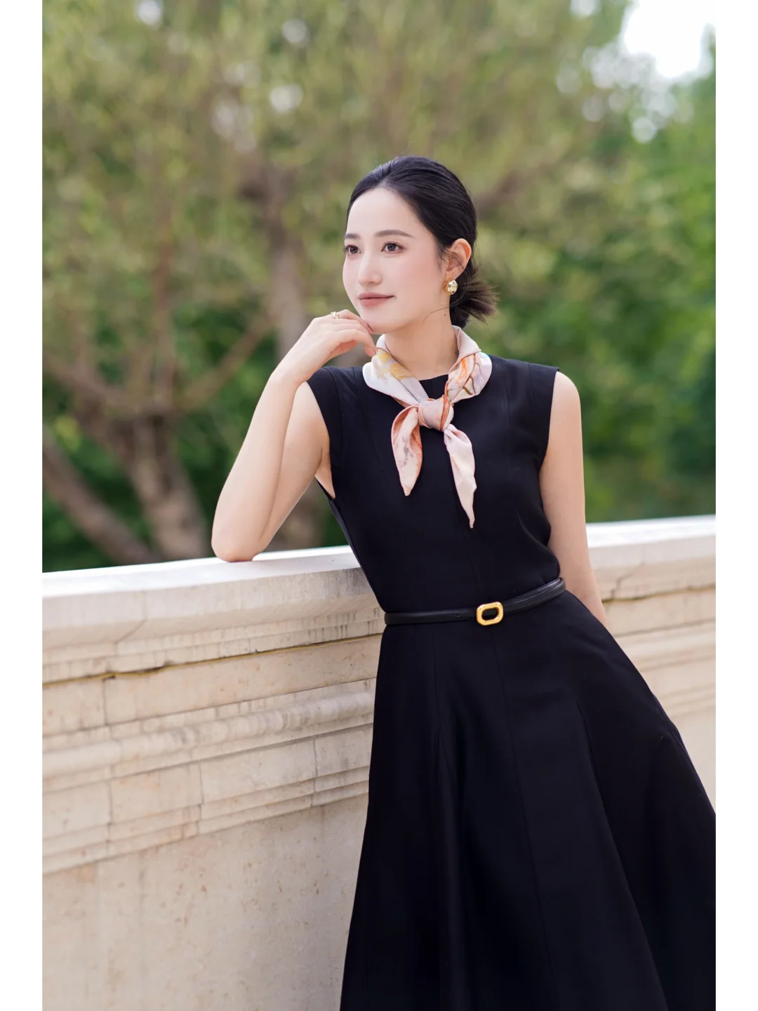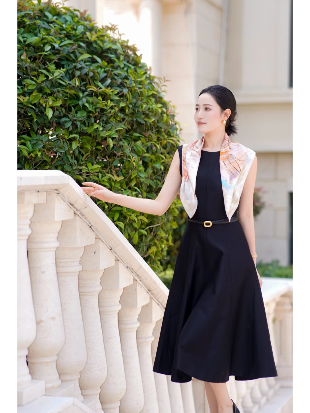 丝巾真的是黑白穿搭的点睛之笔
