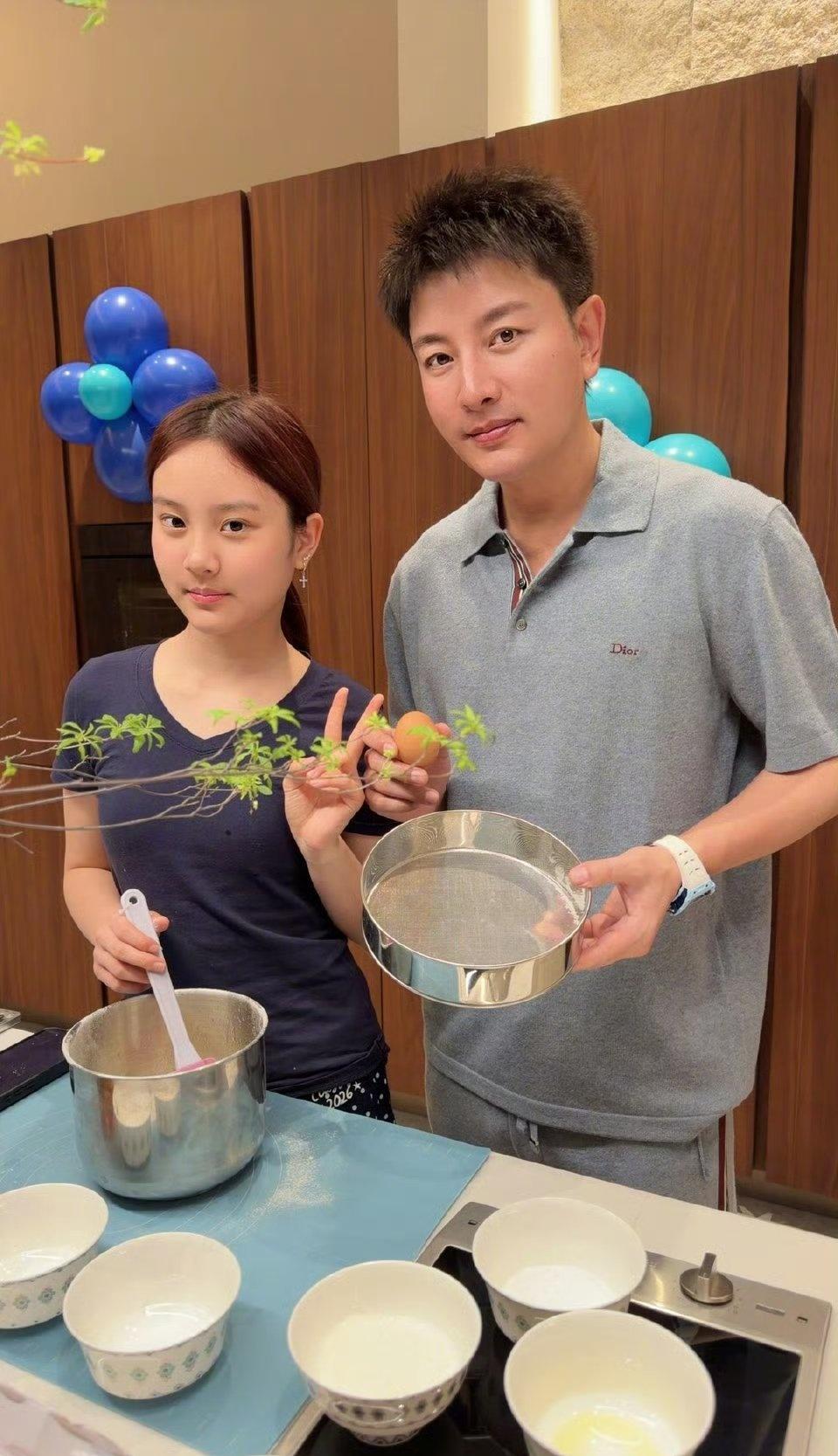 贾乃亮和女儿甜馨一起庆祝42岁生日,父女俩一起制作蛋糕,还一起手机自拍,关系看起