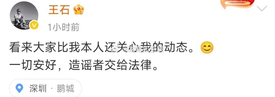 王石:一切安好 造谣者交给法律王石辟谣法治社会